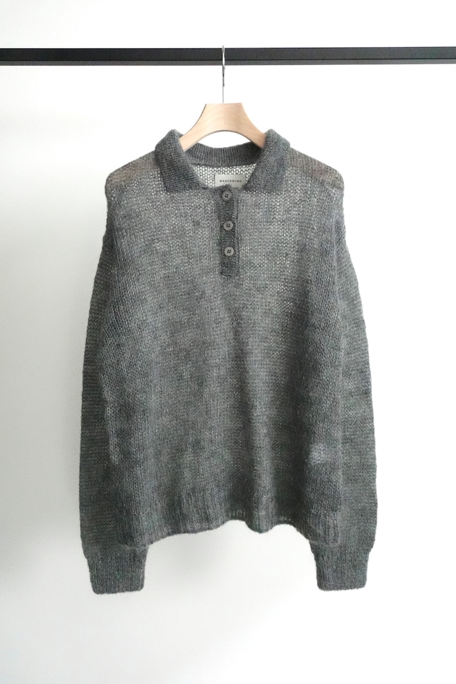 【WANDERUNG】Kid mohair Polo knit/GREY