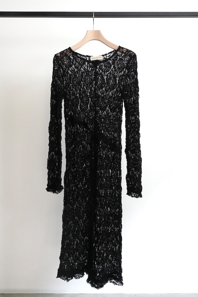 素材 :NYLON95%PU5% サイズ : one 採寸: 着丈104cm 身幅37cm 肩幅33cm 袖幅13cm 袖丈62cm 【商品説明】 伸縮性のあるストレッチレースを使用したドレス。 バックスタイルには深めのスリット入り。 重くなりがちな冬物の厚手のコートやニット、 パンツの上にレイヤードがおすすめです。 衣類の採寸は、すべて平台に平置きし、外寸を測定しております。 アイテムによっては、若干の誤差(1-2cm)がある場合がございます。 パソコンでの閲覧という特性上、商品の画像が実際の色目と多少異なる場合が有ります。 TOLMA.オンラインストアの商品は、実店舗でも販売しております。 画面上で在庫がある状態になっている場合でもタイミングによっては在庫切れの場合もございます。予めご了承下さい。