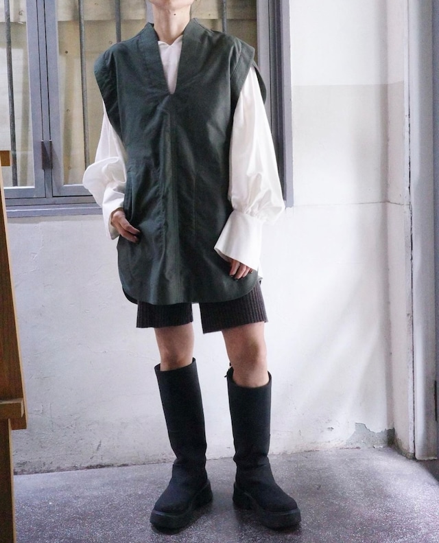 【MameKurogouchi】Brushed Cotton Sleeveless V-neck Top - khaki◾️