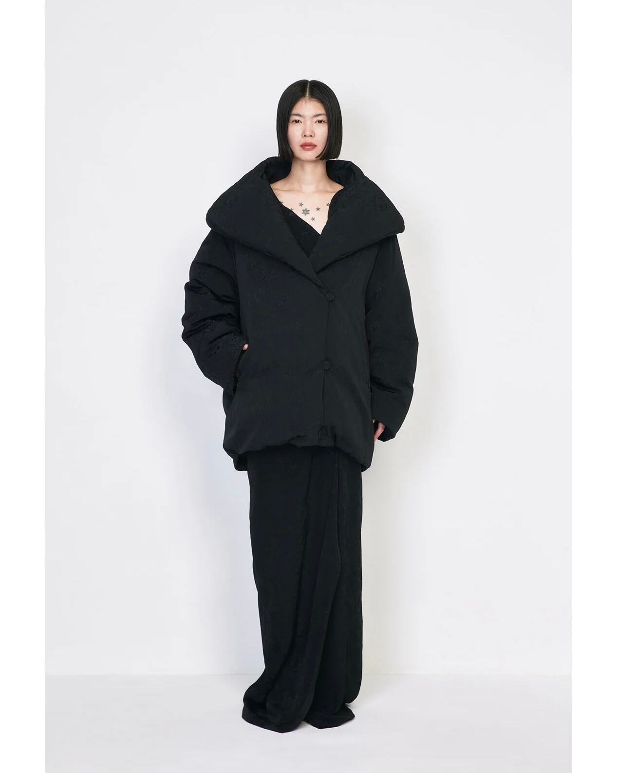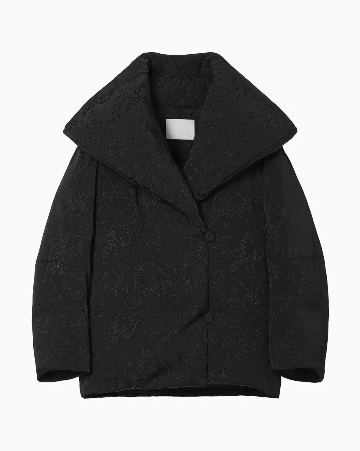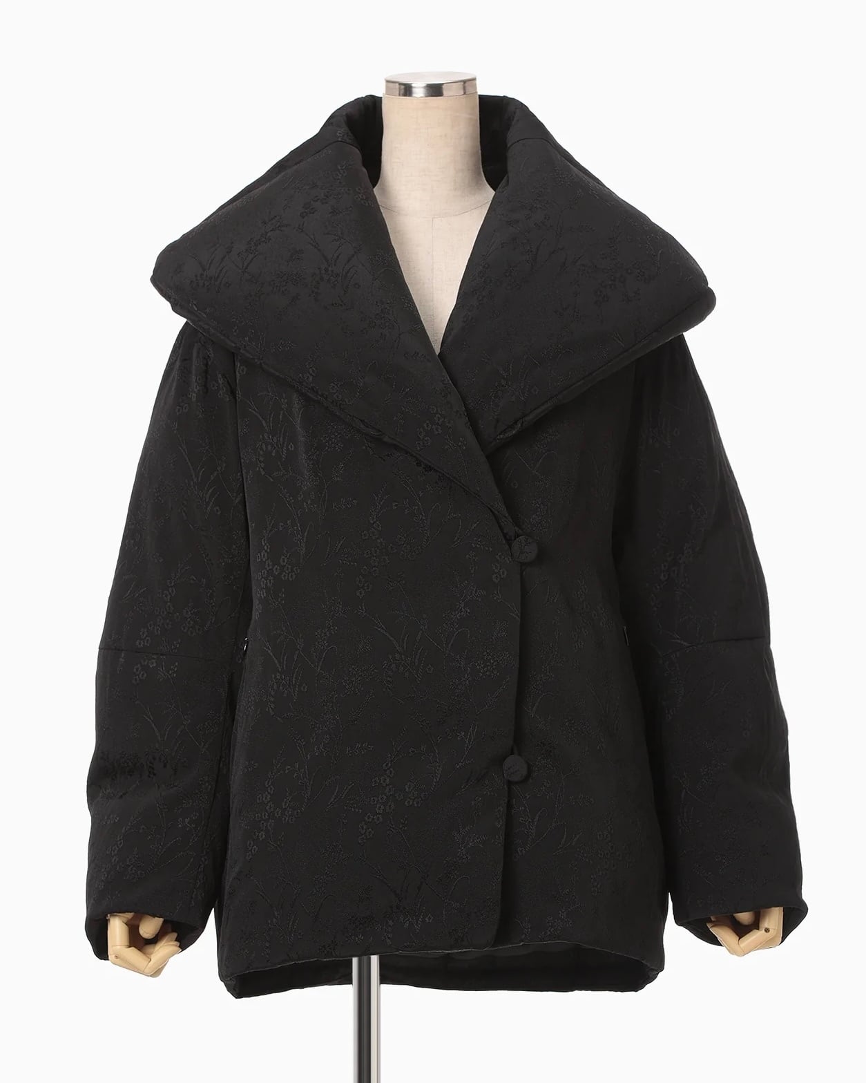 【Mame Kurogouchi】Floral Jacquard Rounded Down Jacket - black