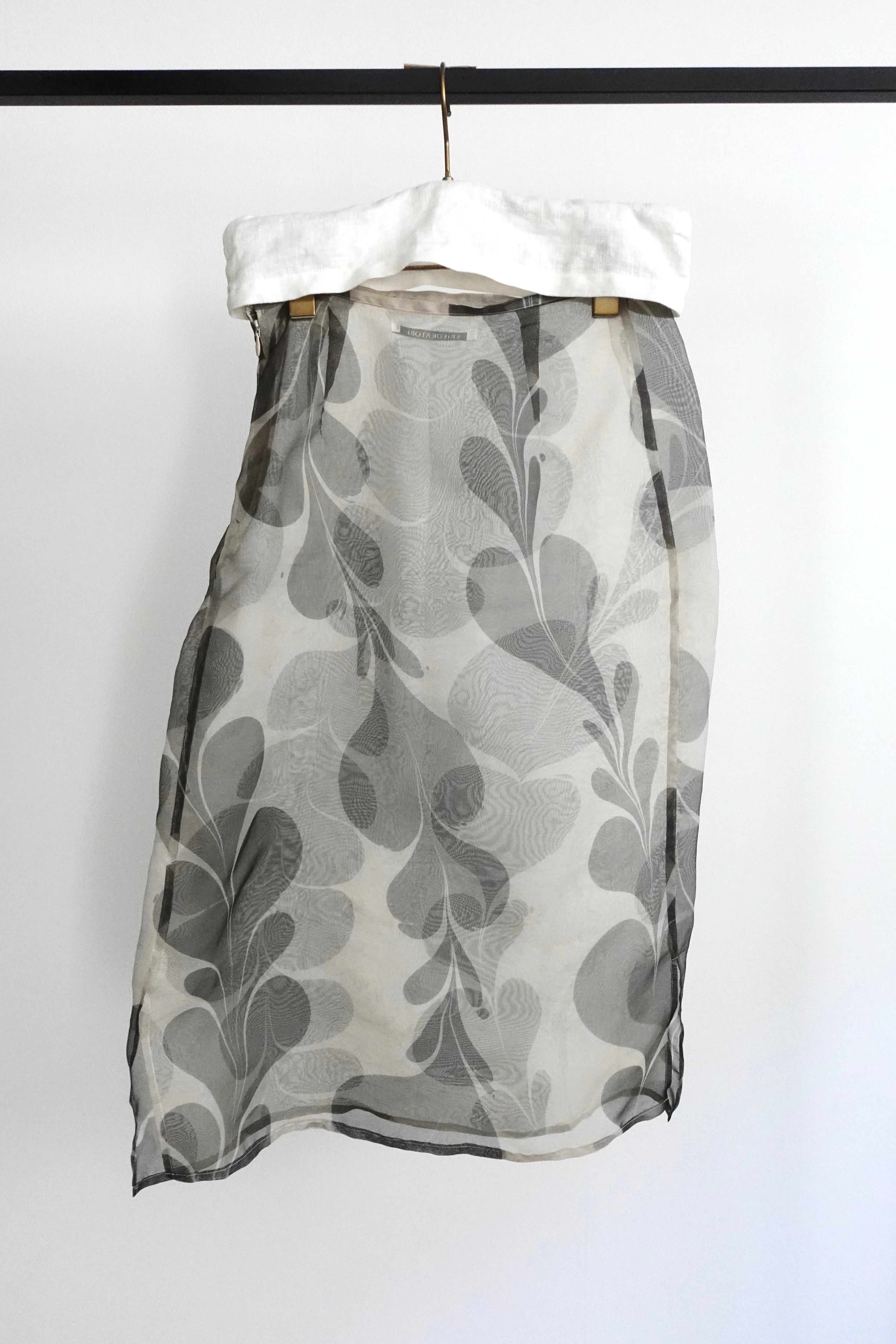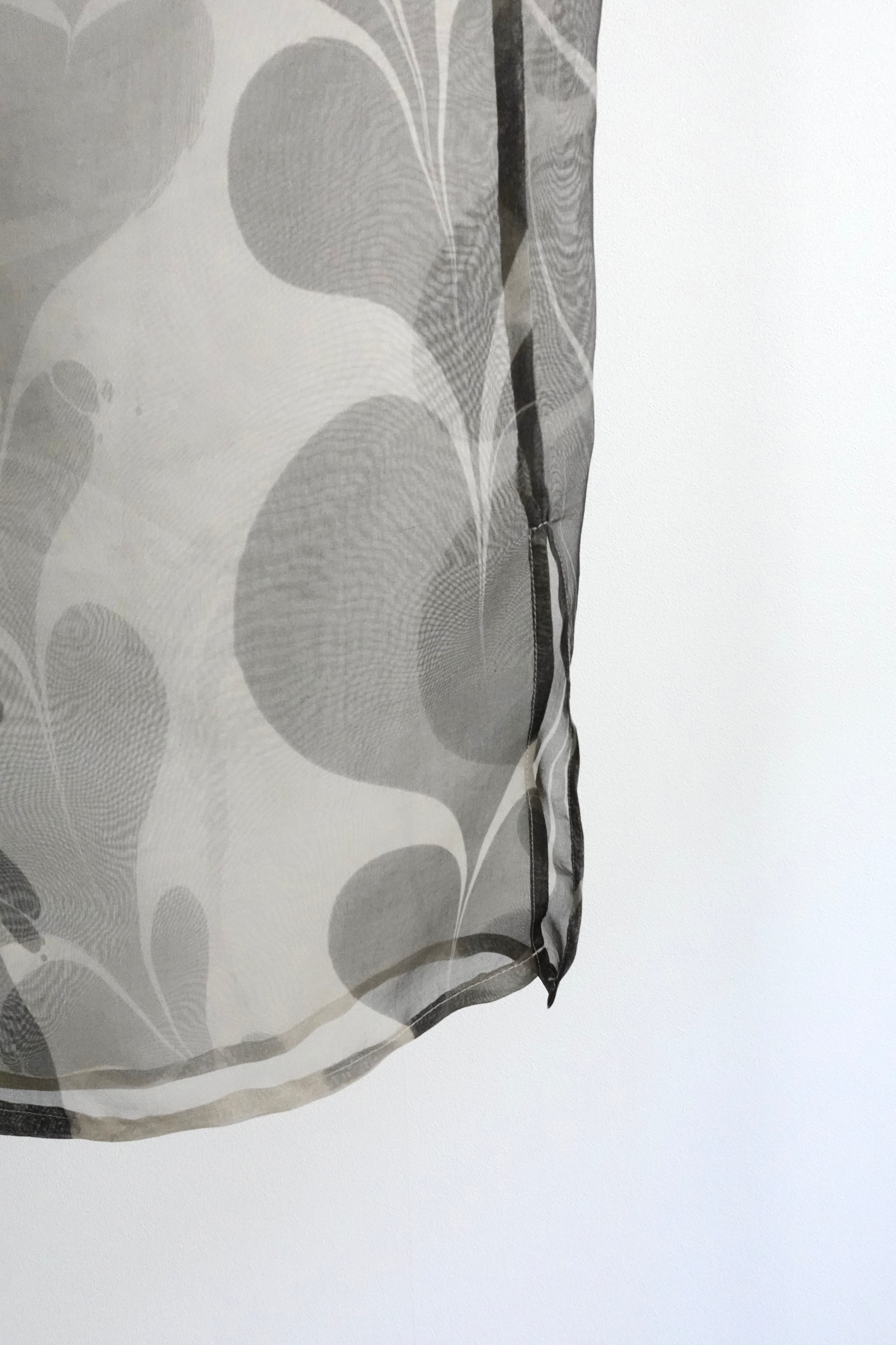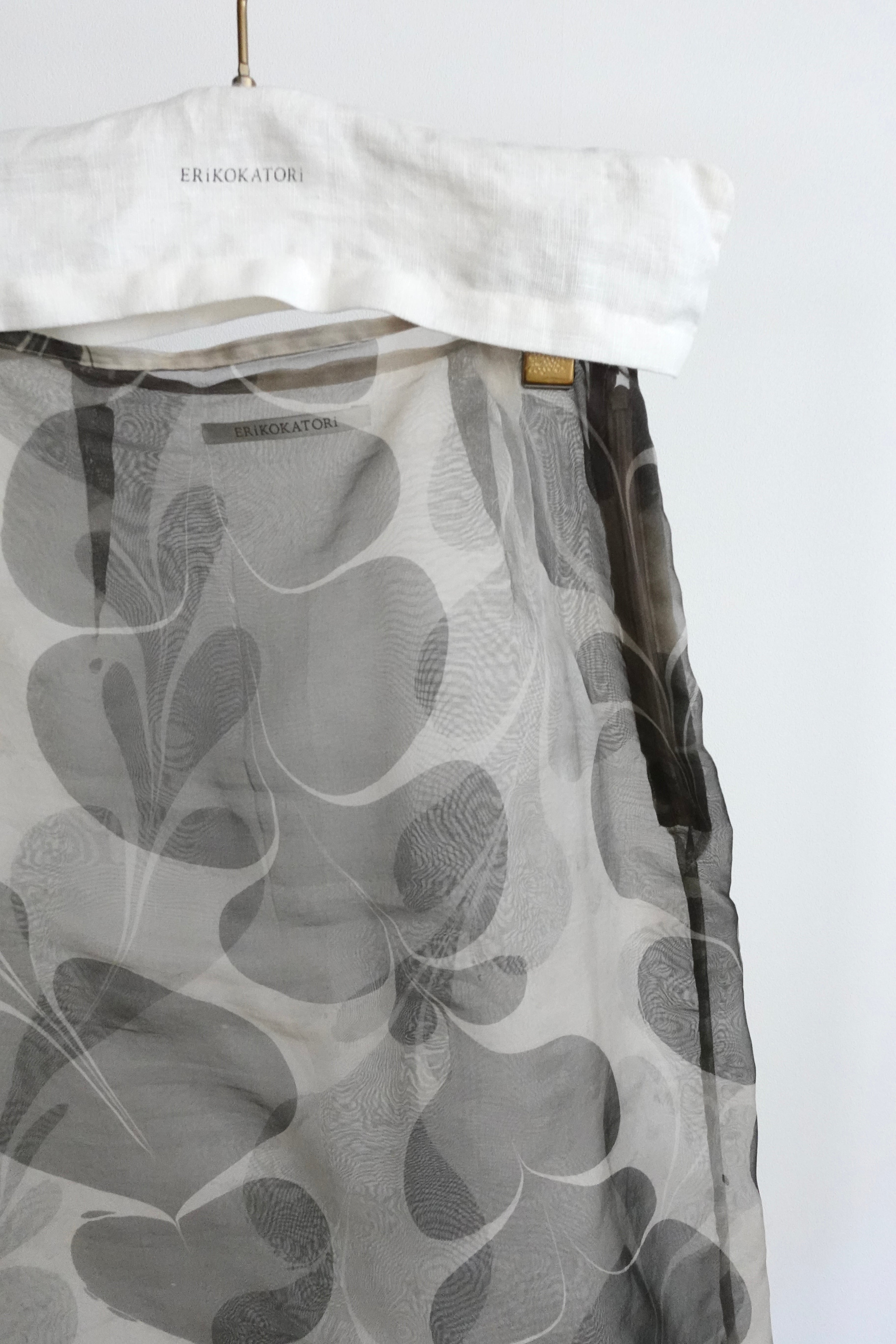 いつもの墨流しとは異なり、お花や葉のような柄を単色の墨流しの手法で表現しました。
