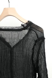 1点1点加工によりシワ、ホツレの表情は異なり、繊細な生地を使用していますので、商品の特性をご納得されたうえでオーダーをお願い致します。