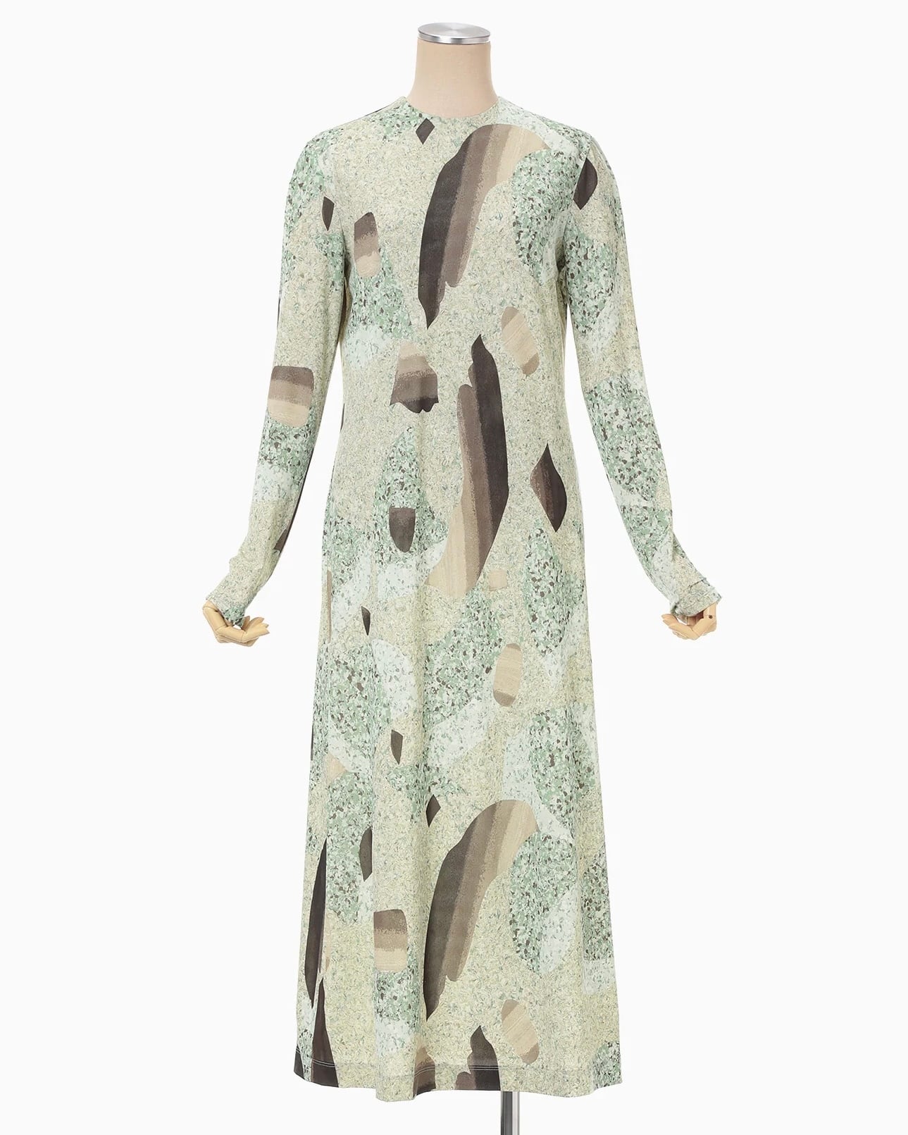 【Mame Kurogouchi】Marble Print Jersey Dress/green