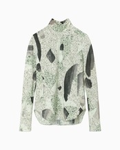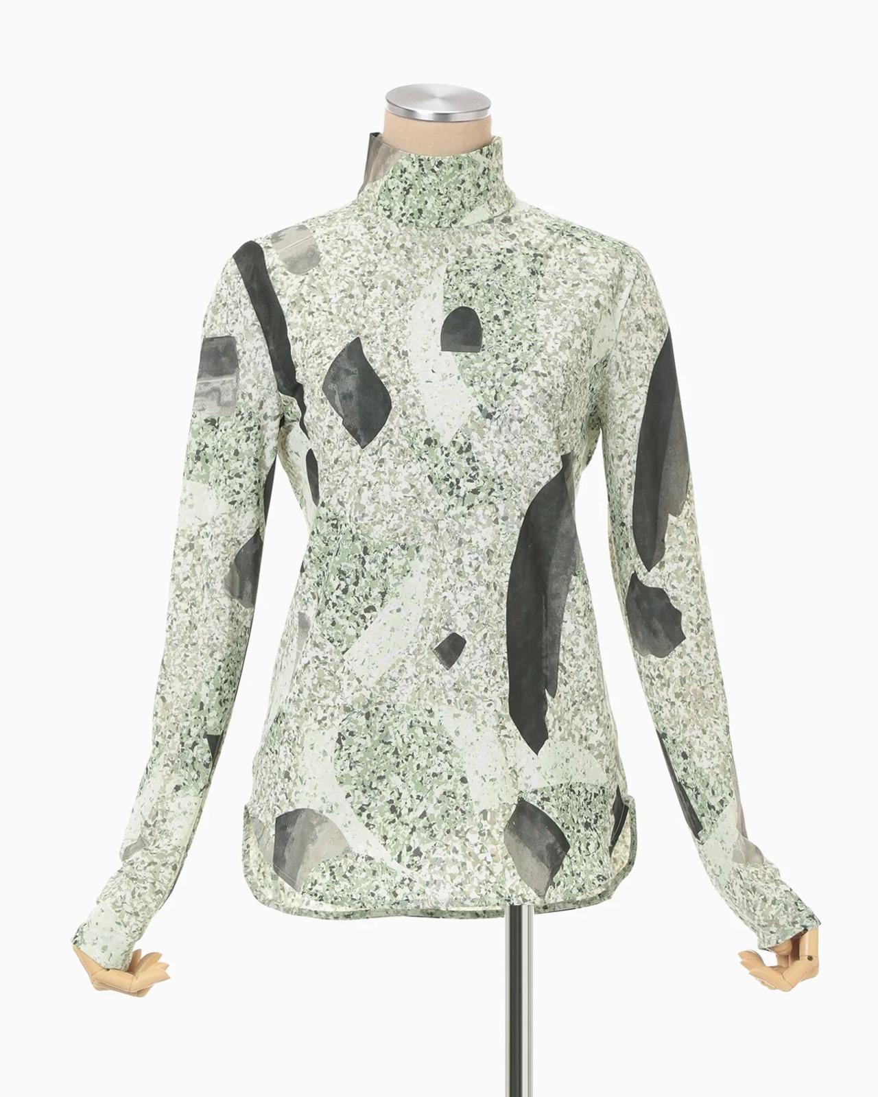 地層石のマーブル模様をプリントしたジャージーハイネックトップ。