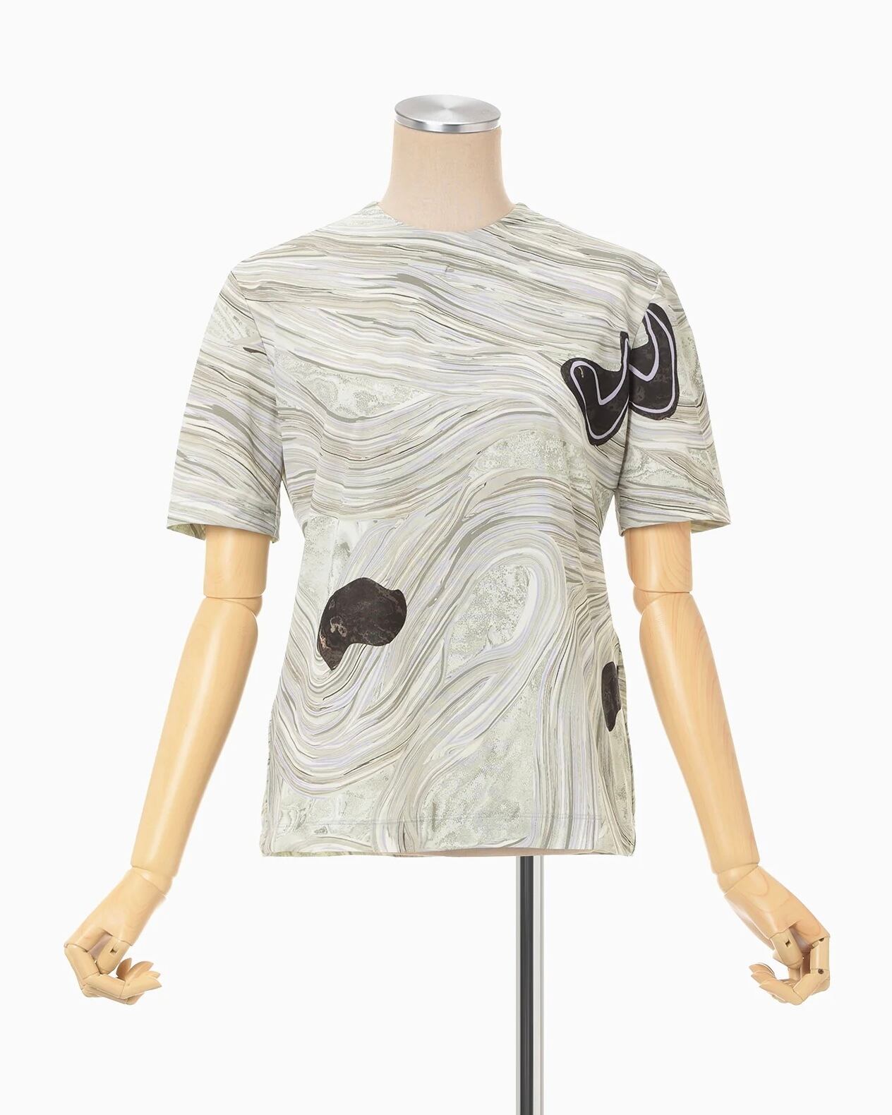 【Mame Kurogouchi】Marble Print Jersey Short Sleeve Top/grey