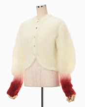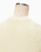 1点ずつ丁寧に手作業で起毛加工を施すことで、軽やかで柔らかな質感と、立体的で豊かな表情を生み出した。光沢感とハリのあるモヘア糸を使用し、丸みのある袖のフォルムと、フィット感のあるコンパクトな身頃がデザインにメリハリを与える。袖口に吊るし染めによる鮮やかな色彩をあしらうことで、シンプルながらも気品ある印象に仕上げている。シンプルなシルエットは、カジュアルからエレガントまで幅広いスタイルに寄り添う一着。