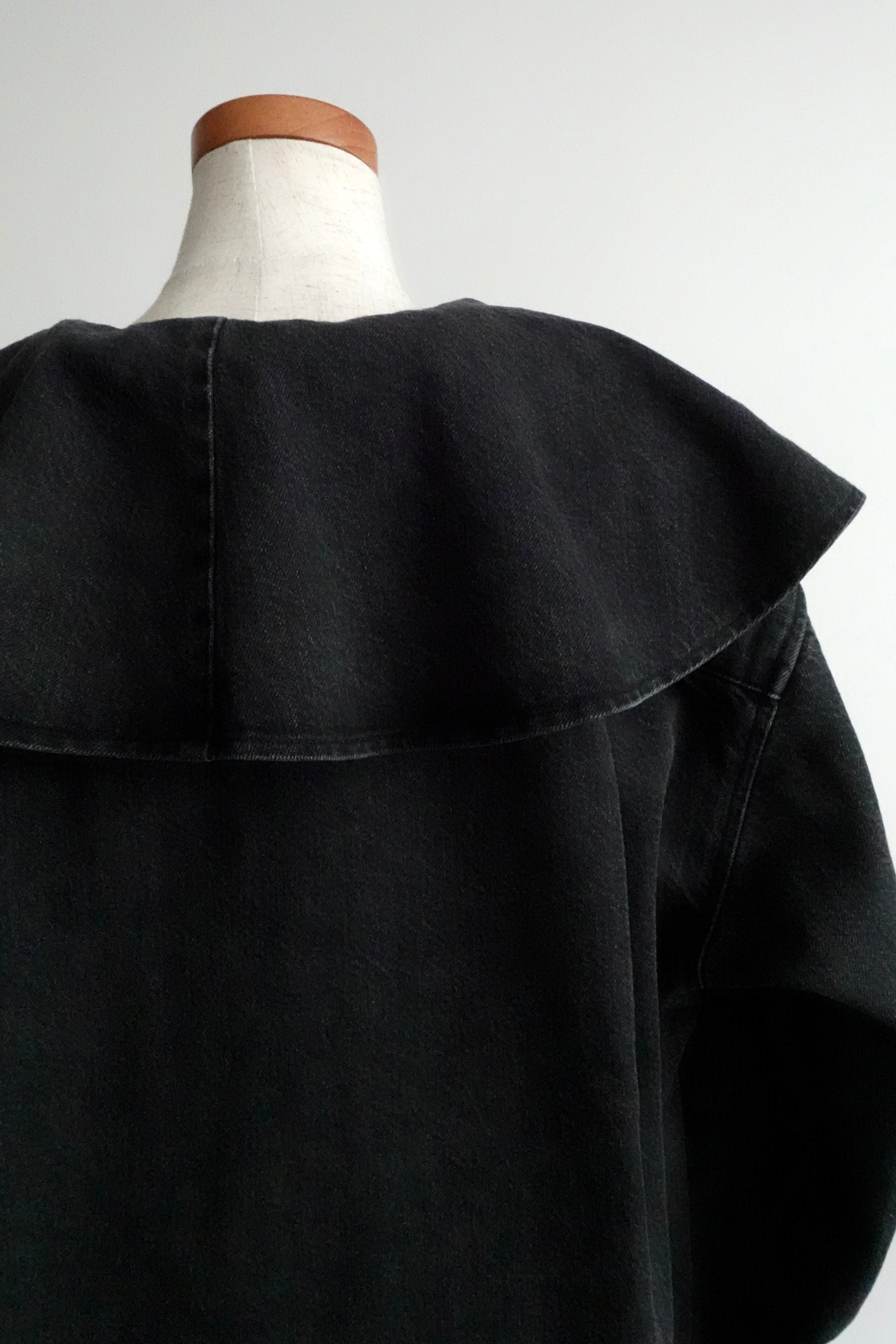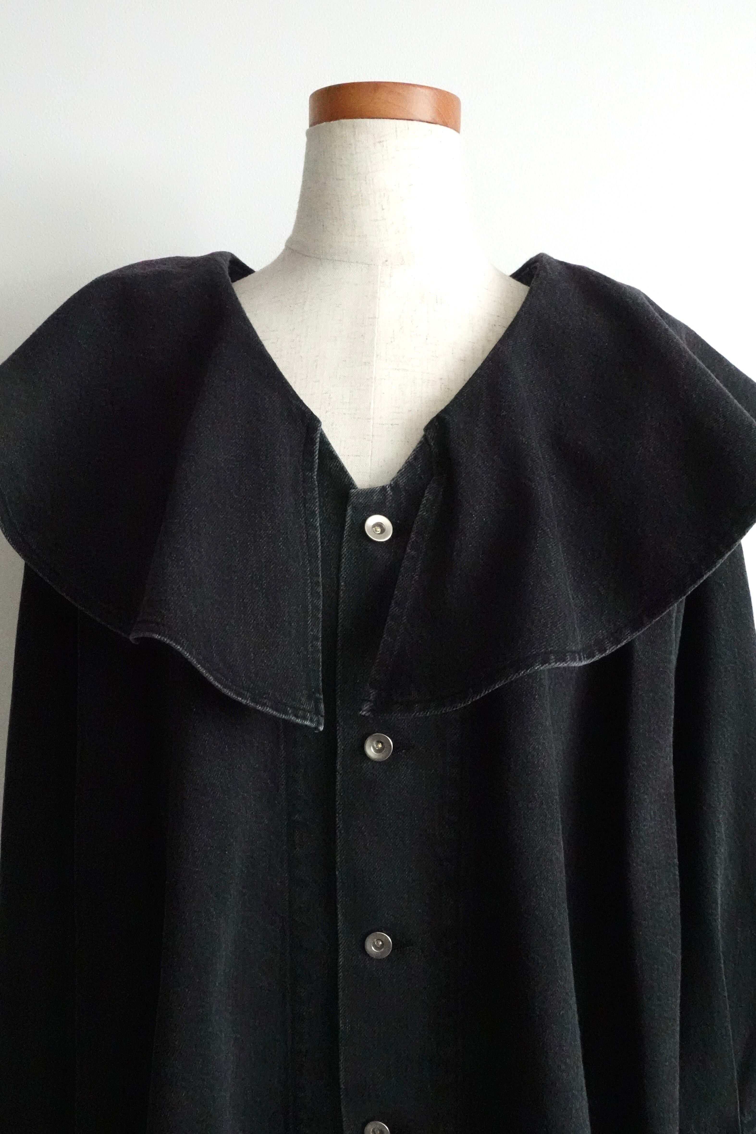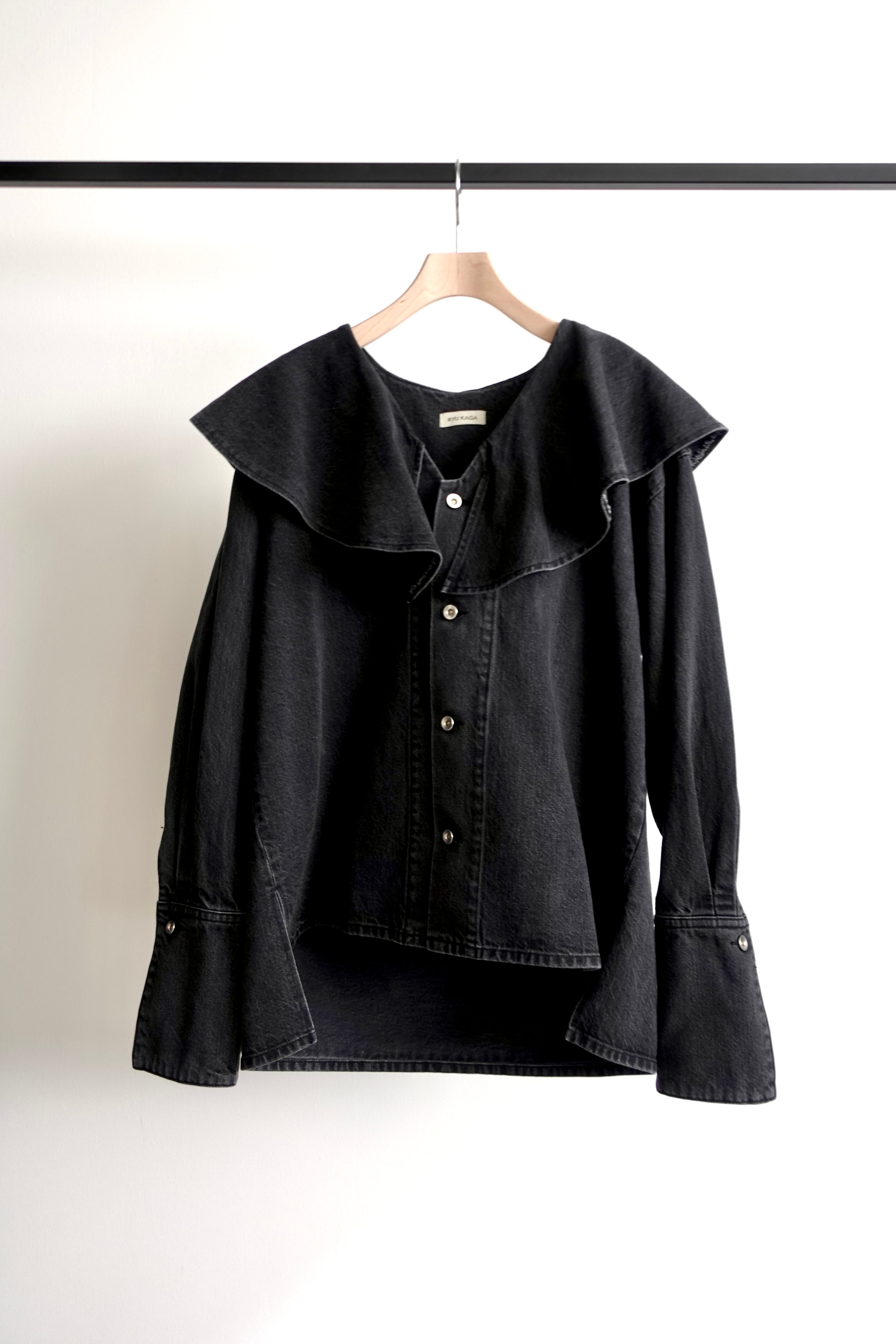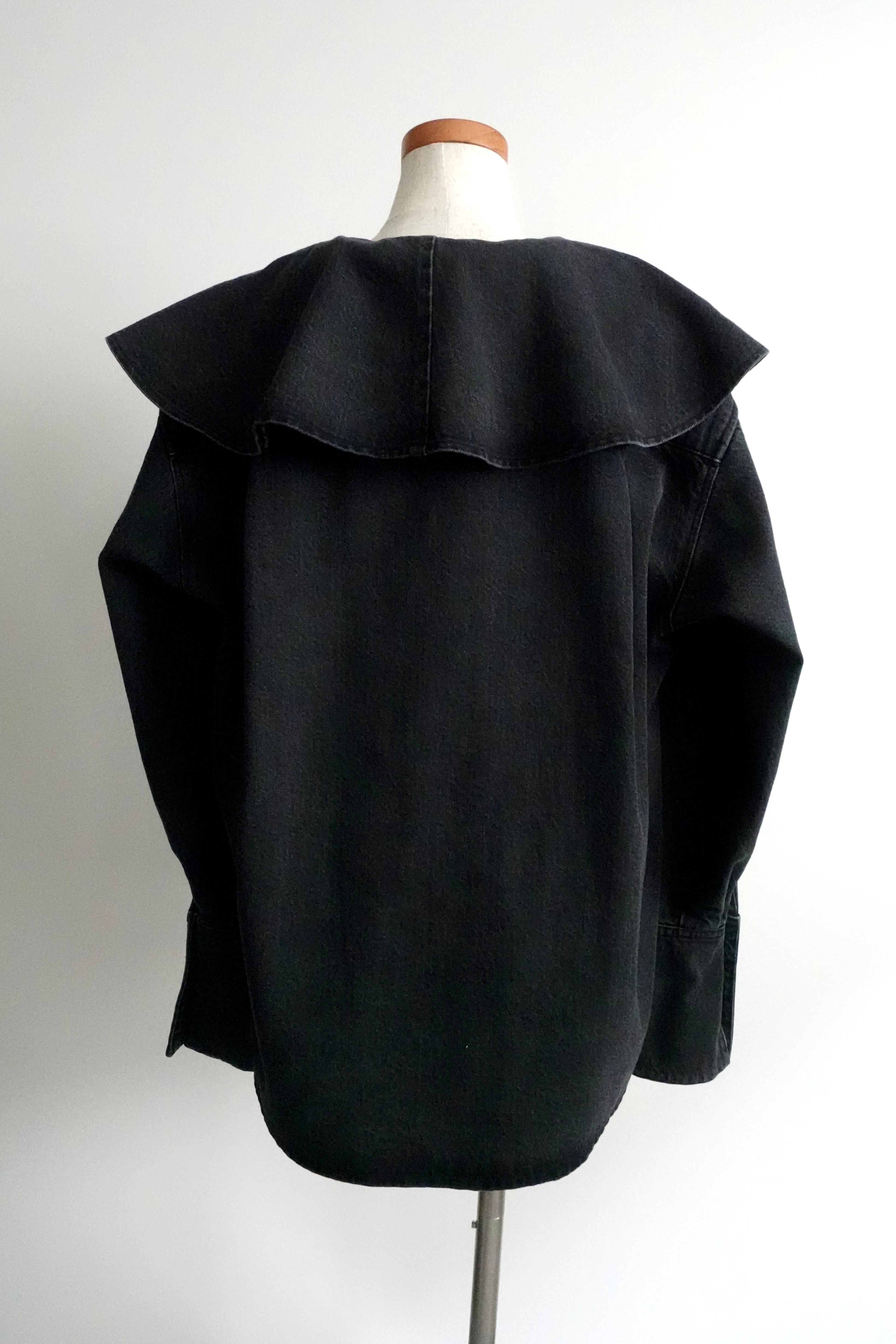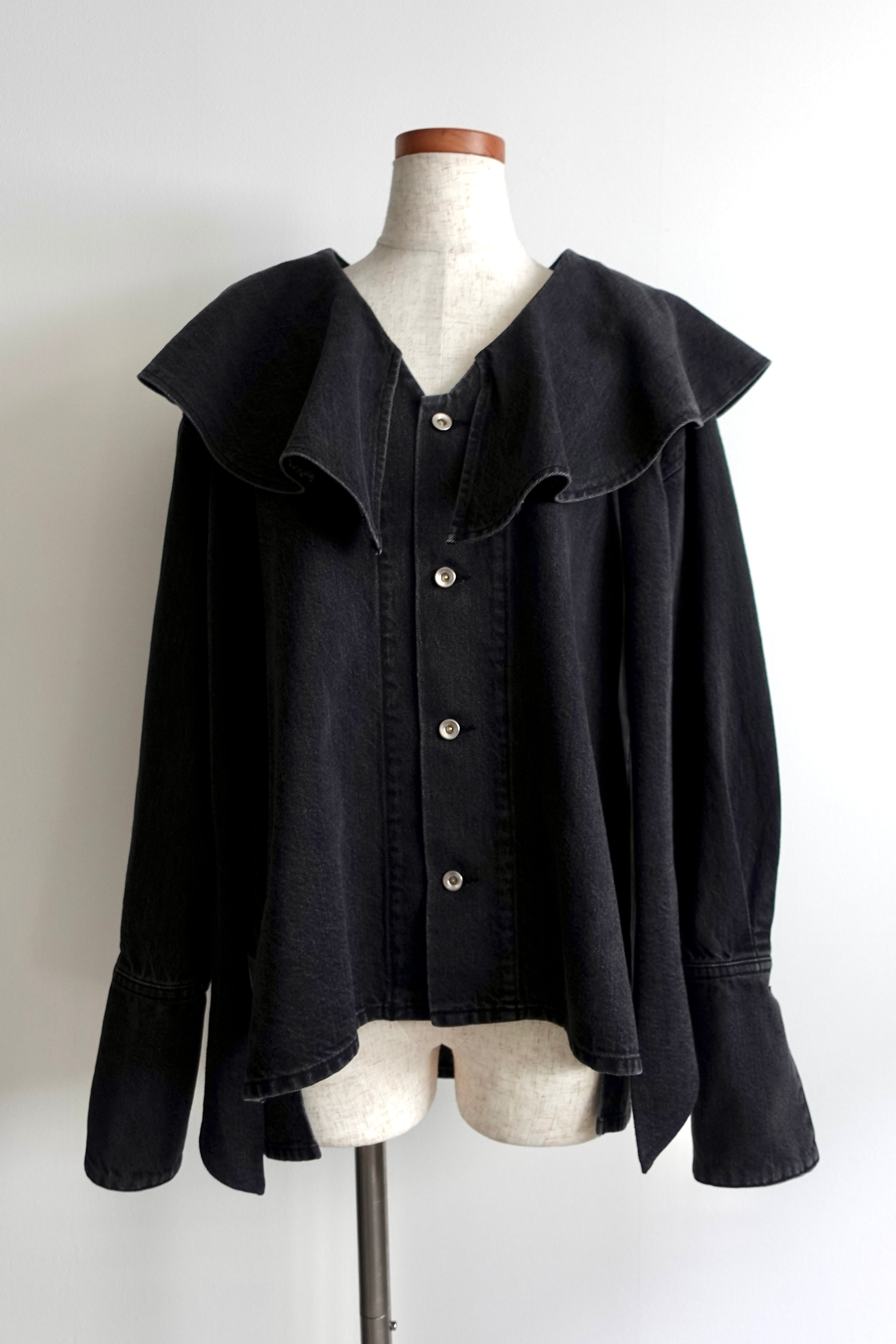 【RYU KAGA】Denim ruffle collar jacket/BLACK