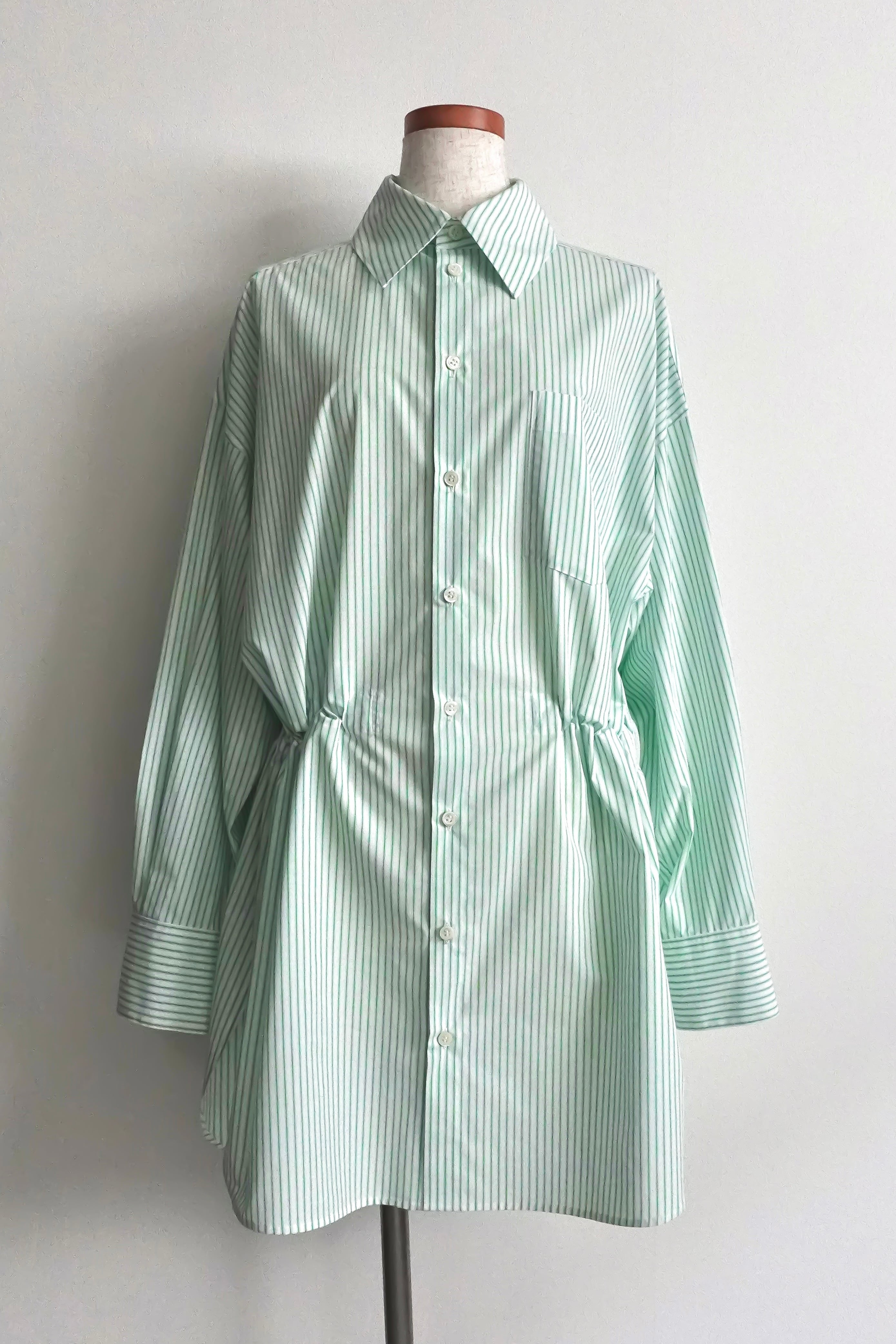 ・ウエスト下にドローストリングを仕込んだオーバーサイズシャツ