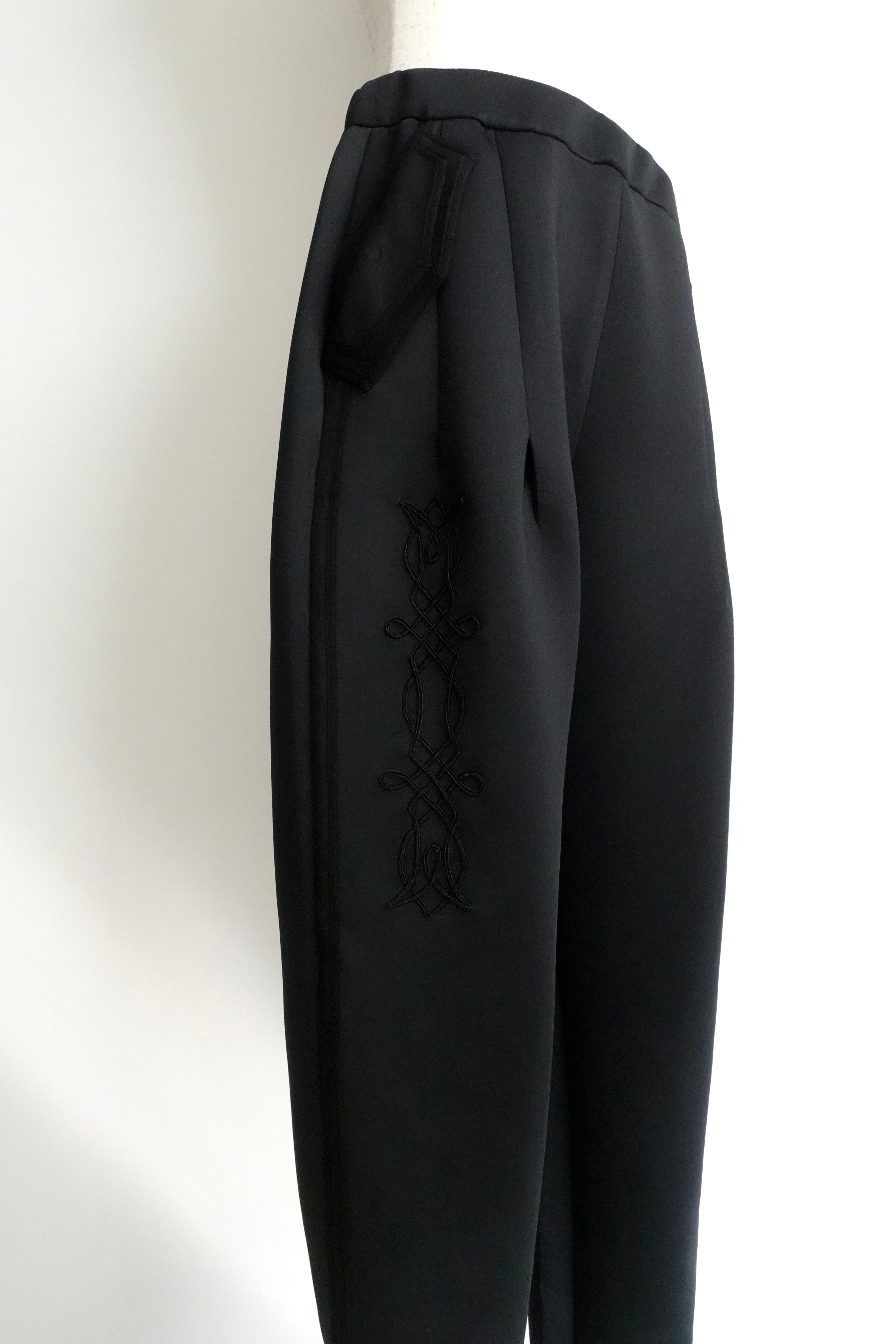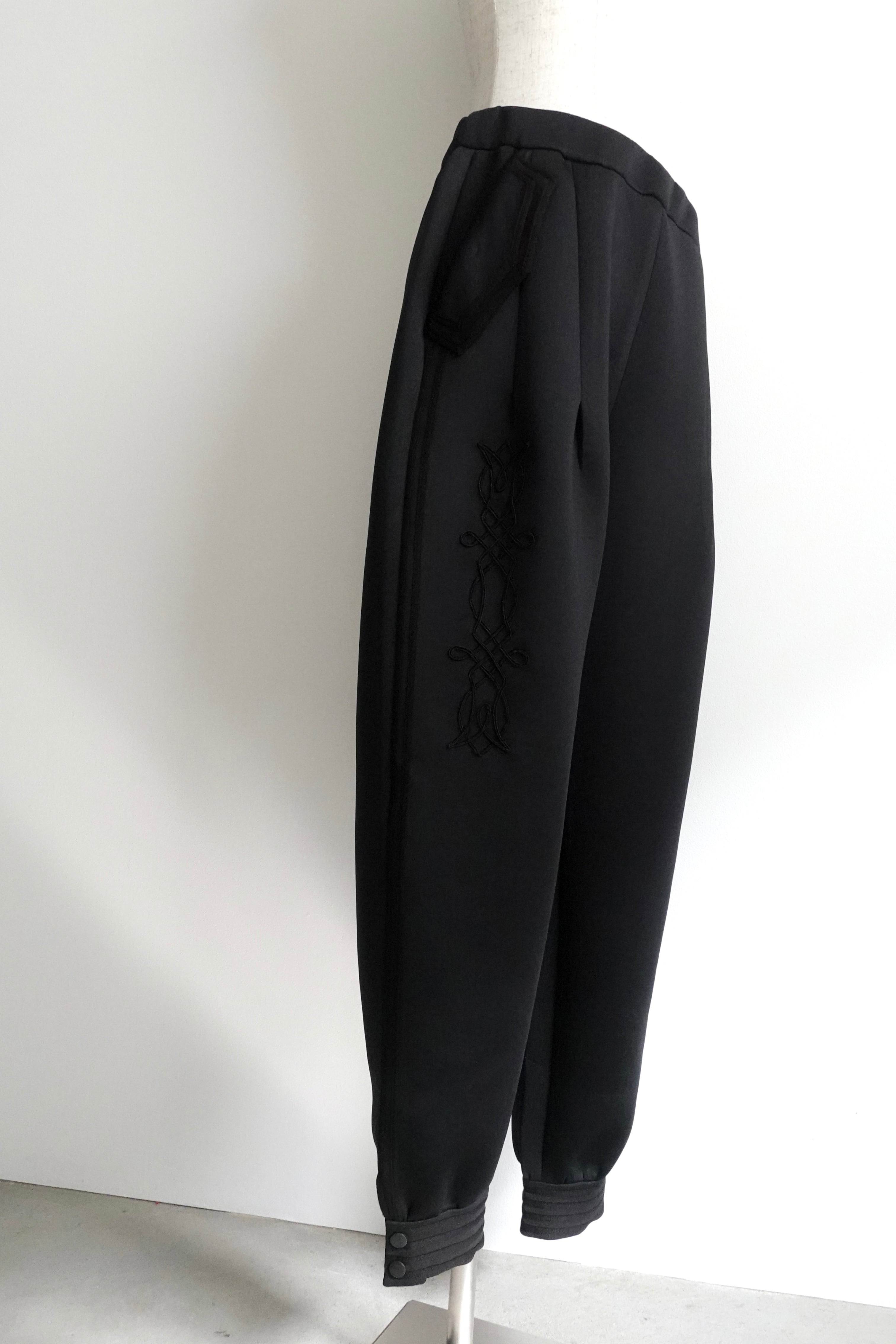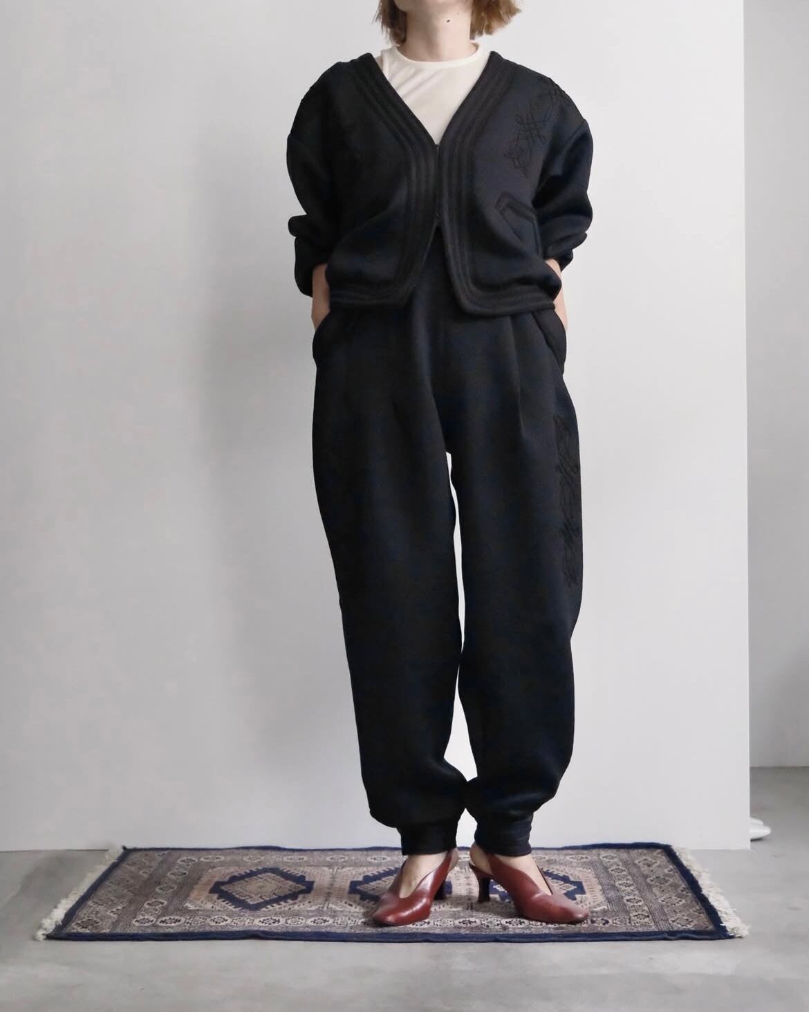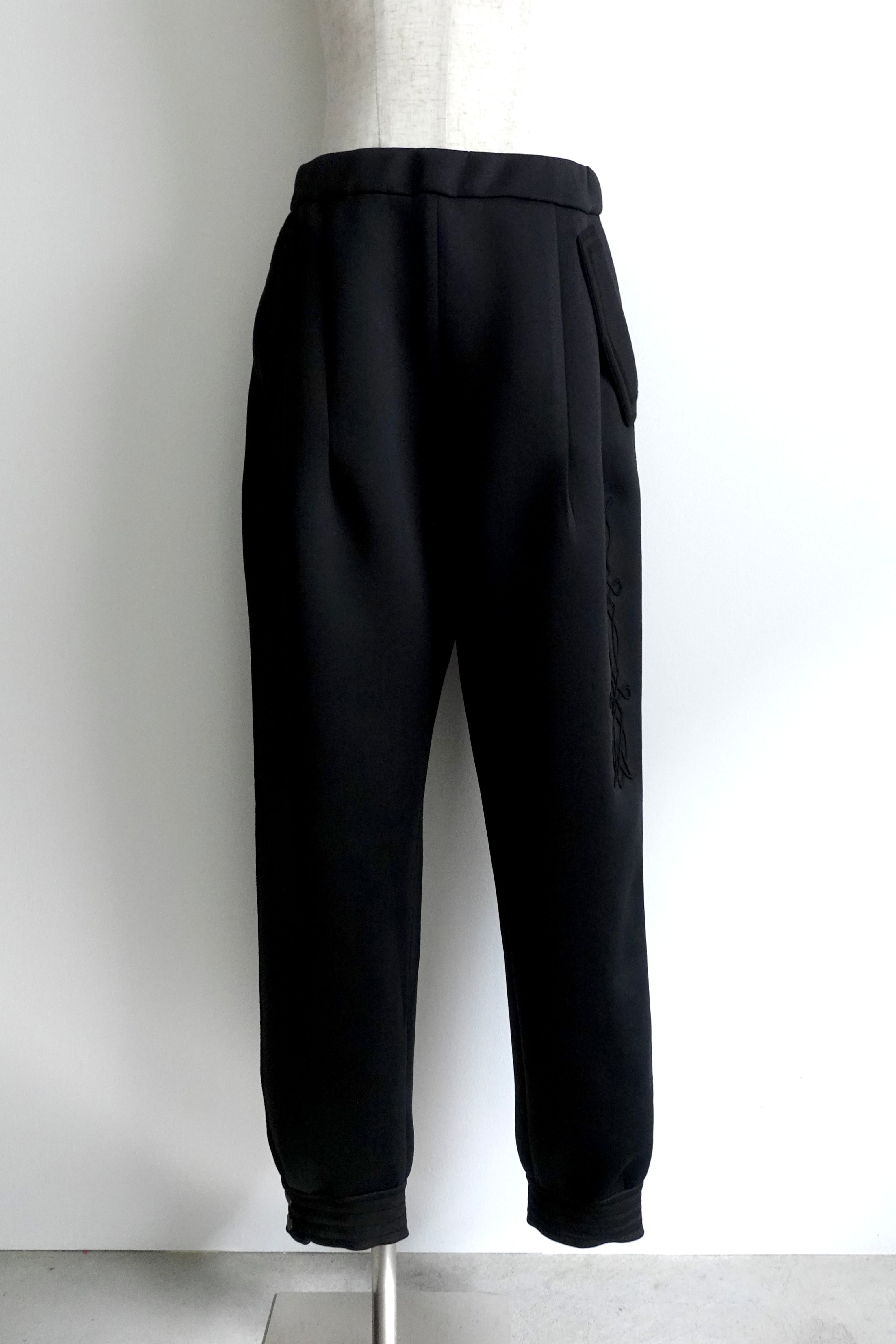 ボンディング生地にコード刺繍を施したボトムです。