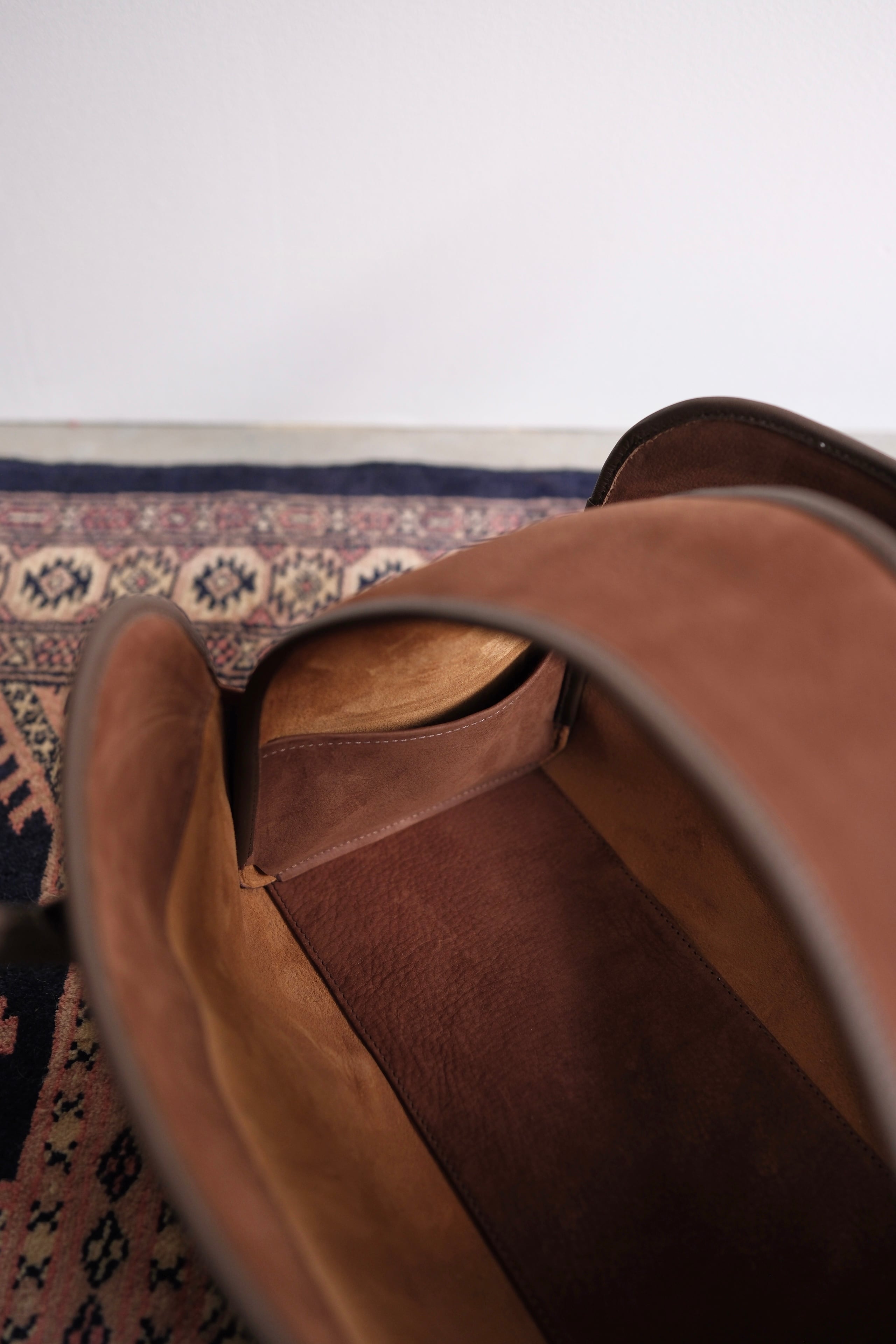 熟練した革職人がひとつひとつハンドメイドで丁寧に仕立てており、軽量かつ柔らかな革は使い込むほどに味わいの出る経年変化を楽しめます。
