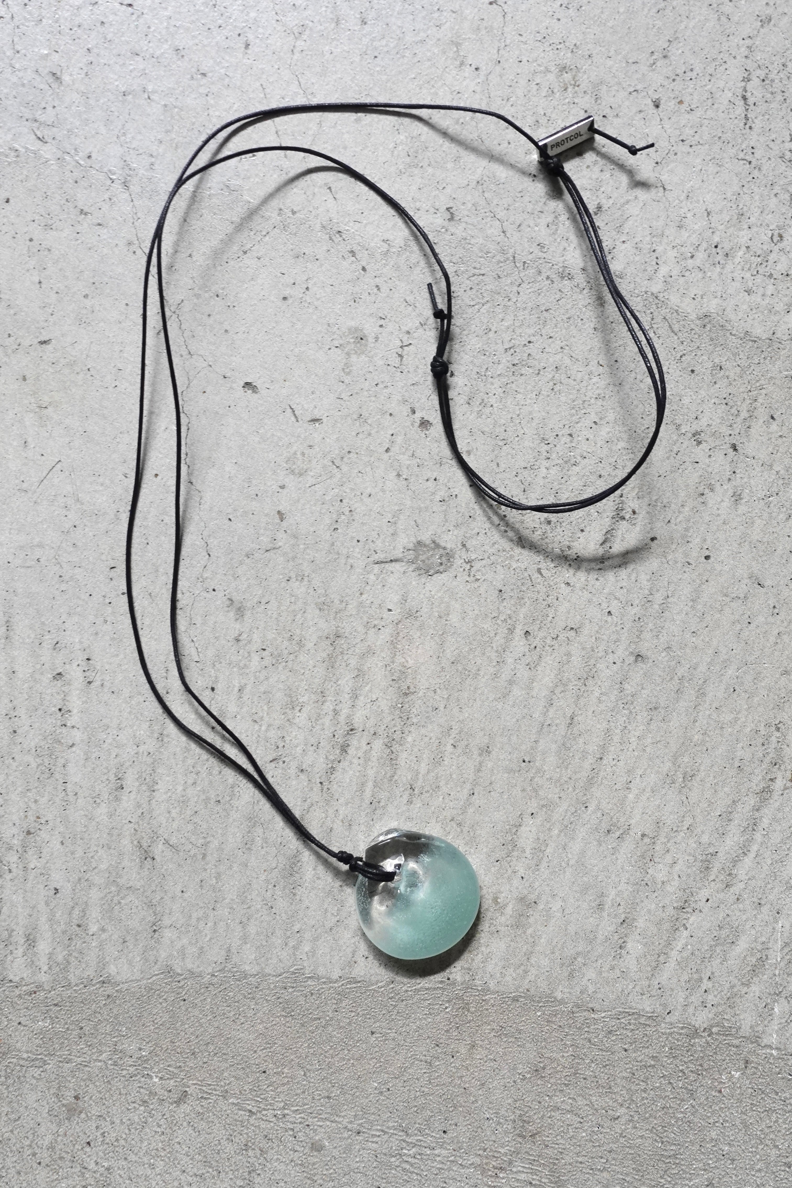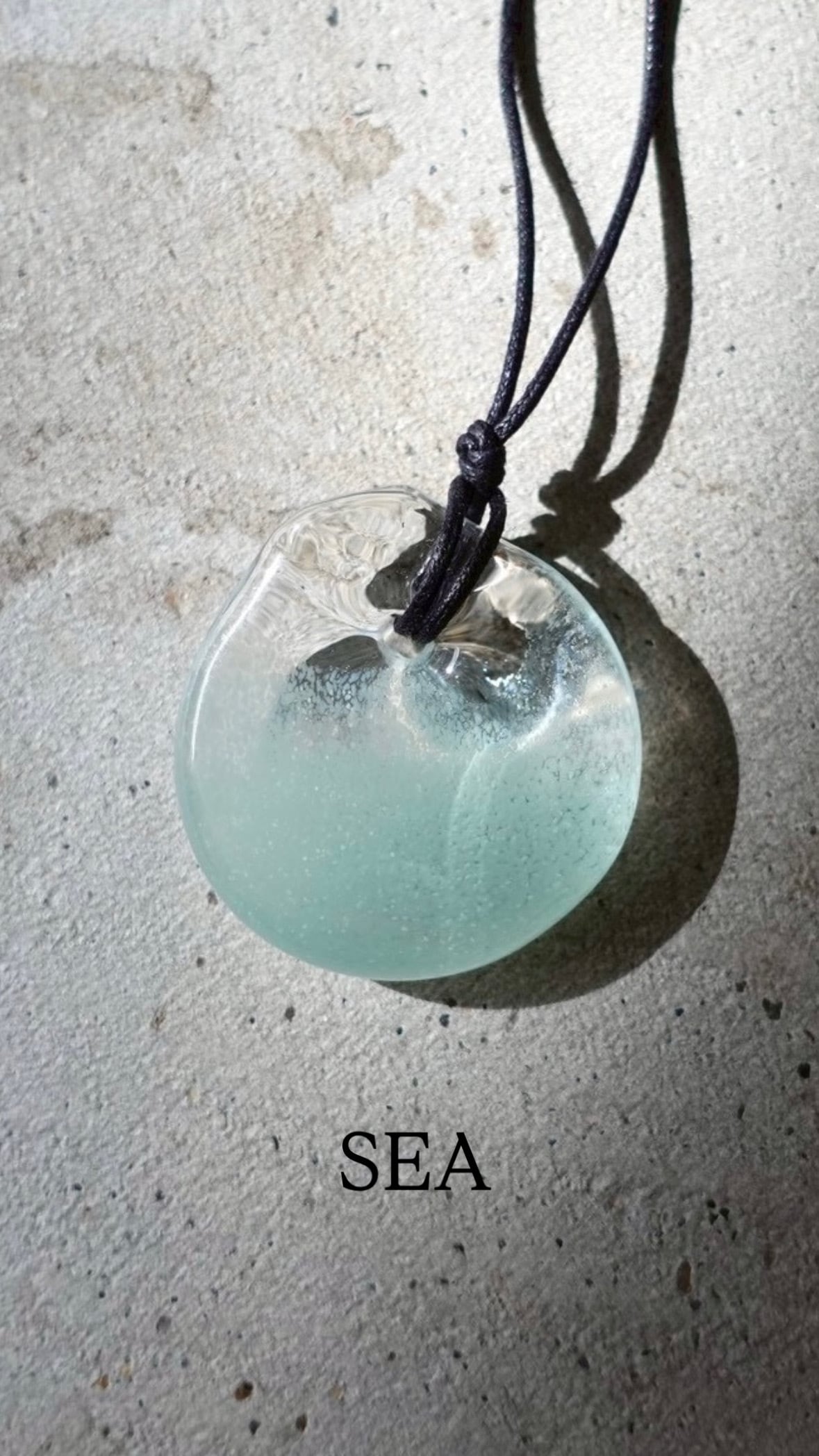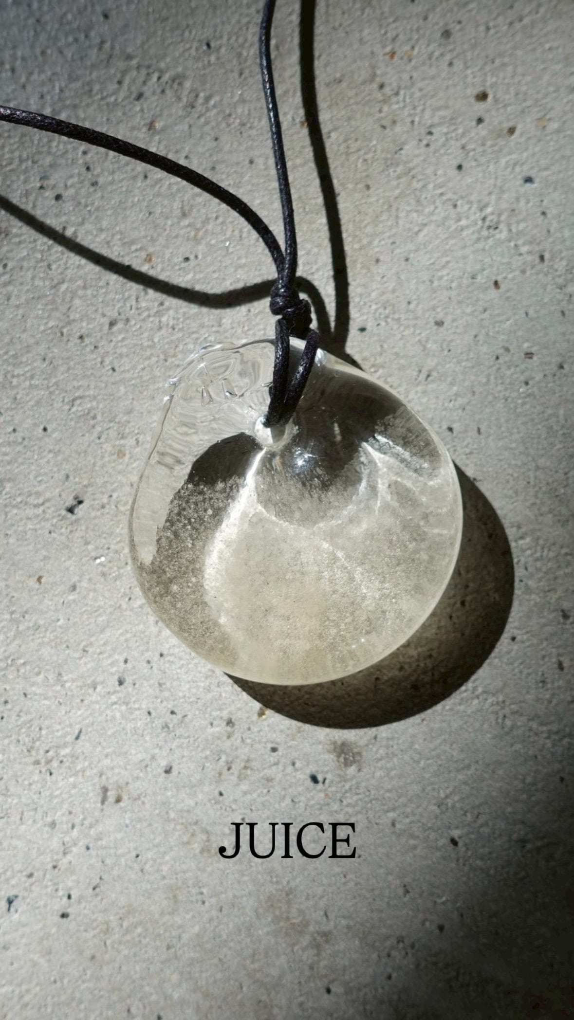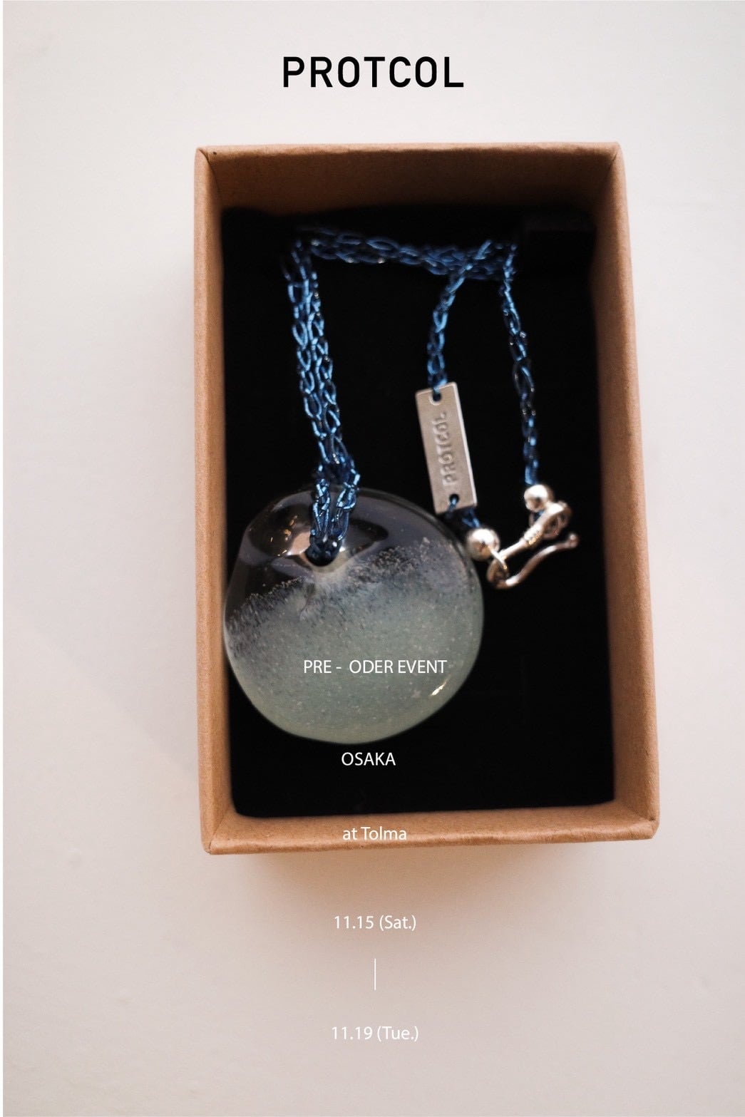 今回はガラスアーティストのYuri Iwamoto さんにご協力いただき、ガラスのネックレスを発表しました。デザインものとして依頼することに思考や視点の気づきがあると思っており、普段の彼女のアートワークを尊重したく、コラボレーションという言い方はあえてしないようにしております。