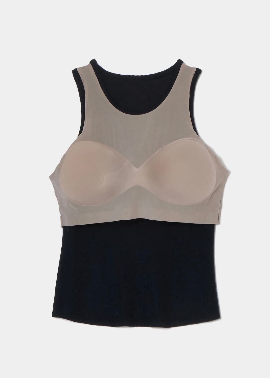 今シーズンより展開するカシミア混の再生繊維ストレッチを使用した柔らかく肌馴染みの良い風合いが特徴の新シリーズ。インナーのカップは新しいピーナッツカップを使用したライトなフィット感のシリーズでよりニットウェアとの一体感を意識した作りになっています。ホールガーメントで編み立てたファインゲージなニッティングに合わせたシートタイプの新しいカップ構造はシームレスな着心地をより体現できる様作られています。