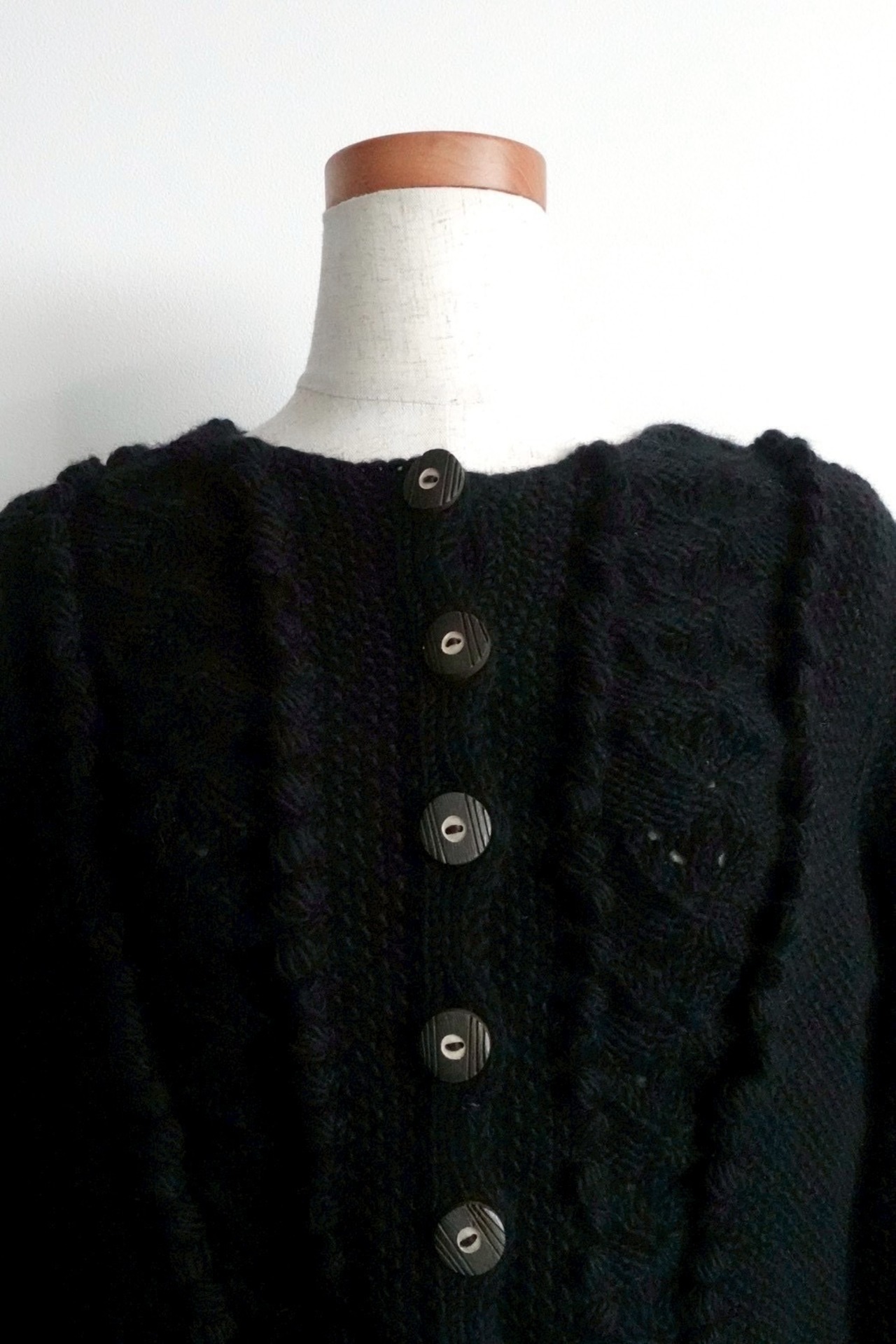 【Ajwain】Vintage Motif Cardigan Knit/BLACK