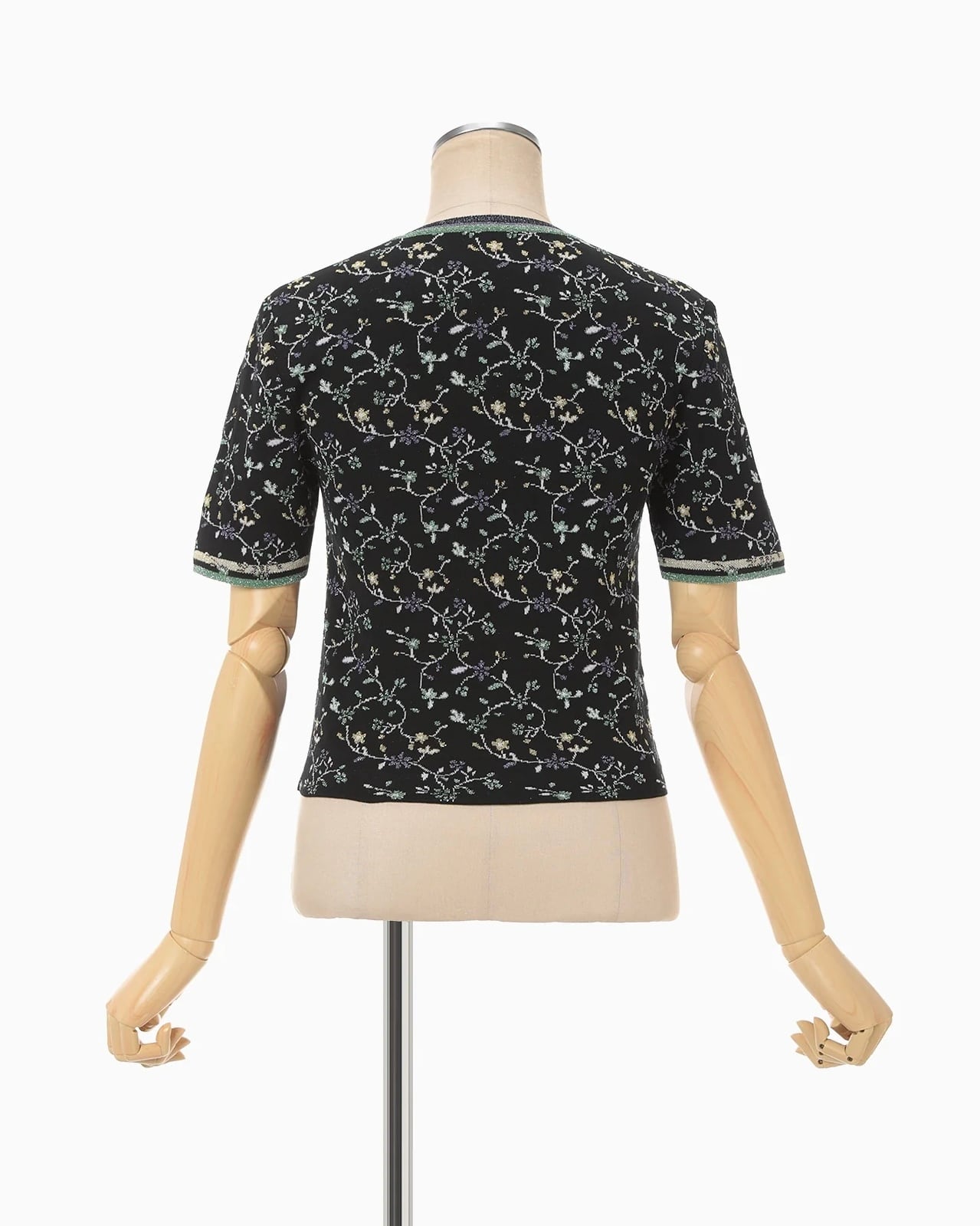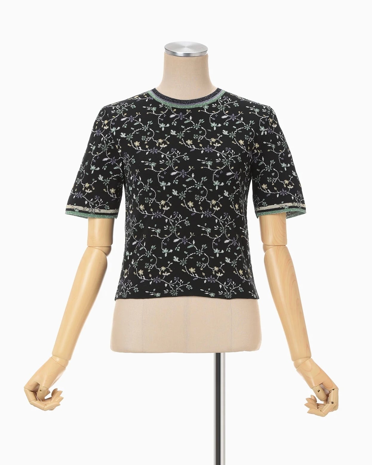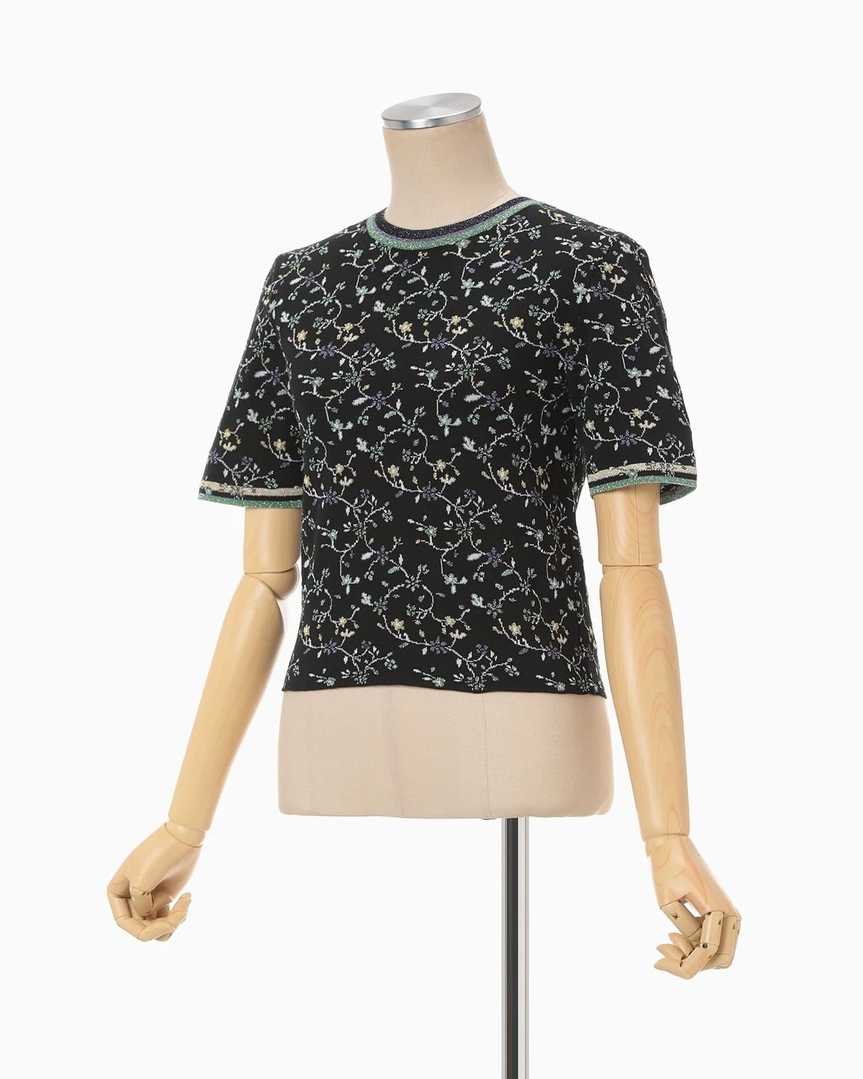 【Mame Kurogouchi】Floral Motif Glitter Short Sleeve Knit Top/black