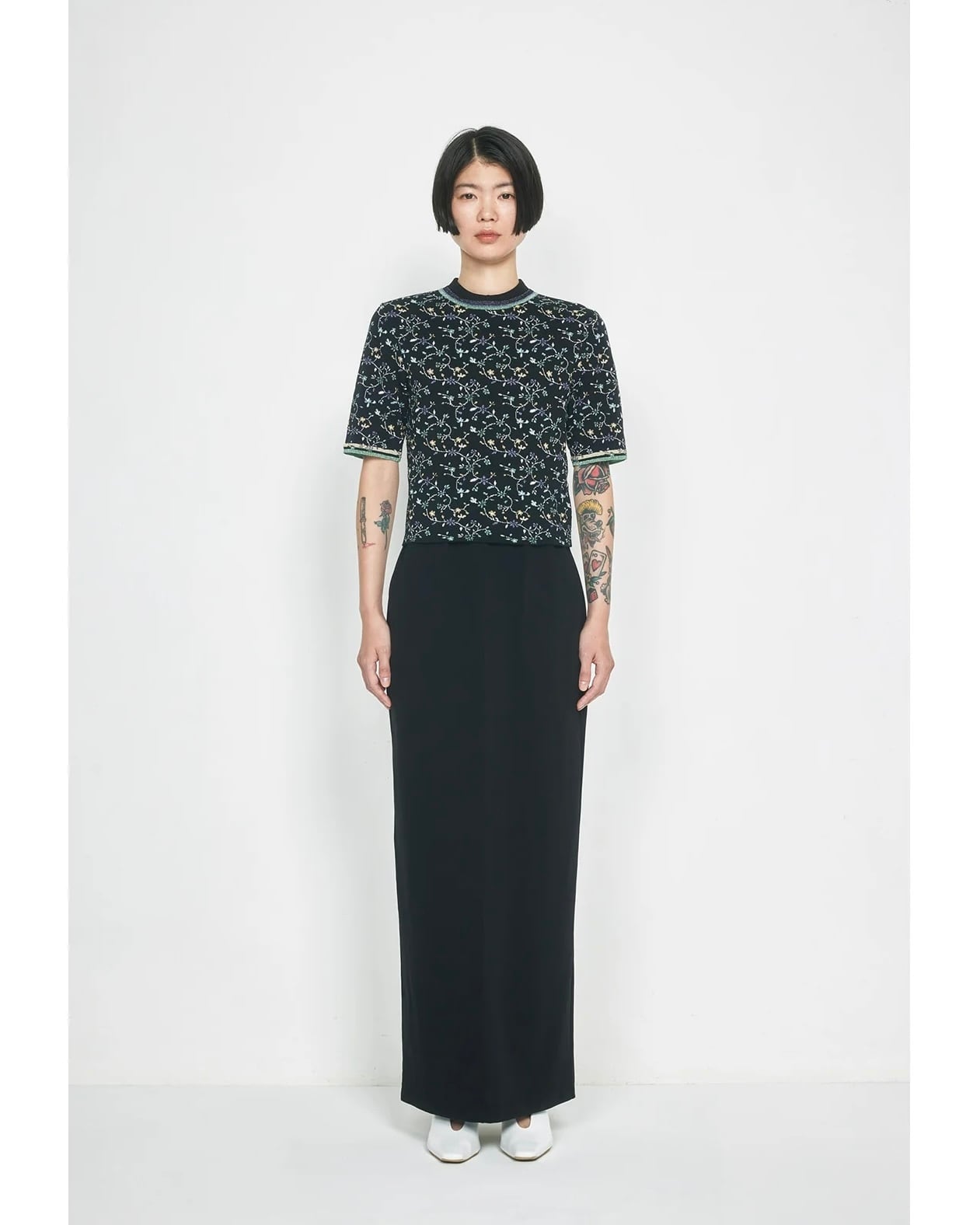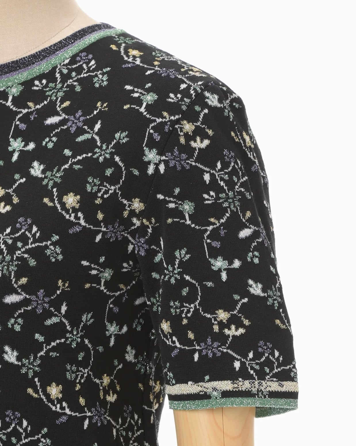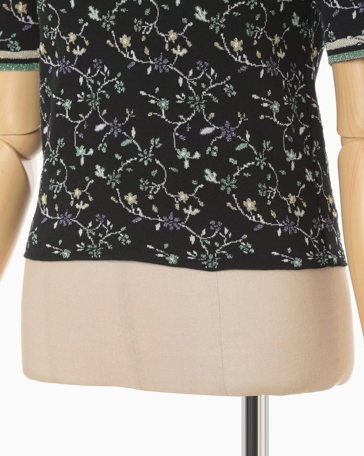 【Mame Kurogouchi】Floral Motif Glitter Short Sleeve Knit Top/black