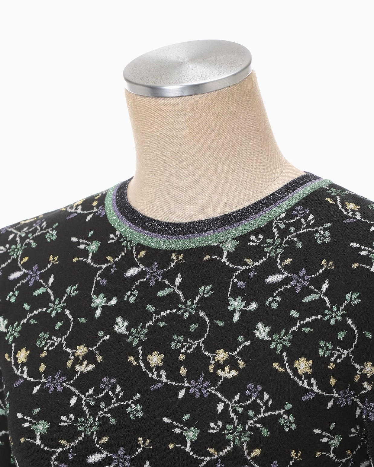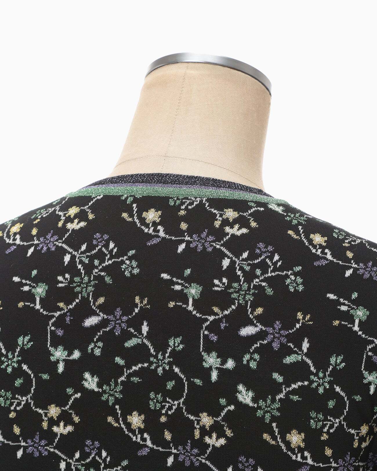 日本の古布や西洋のガラス作品にも見られる蔦柄を表現したニットトップ。