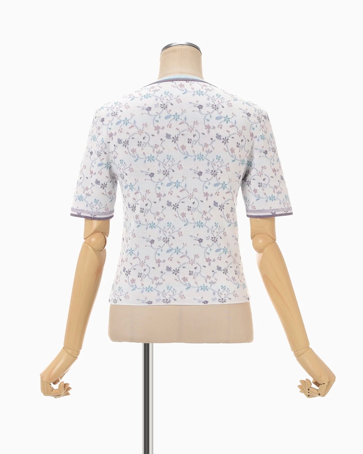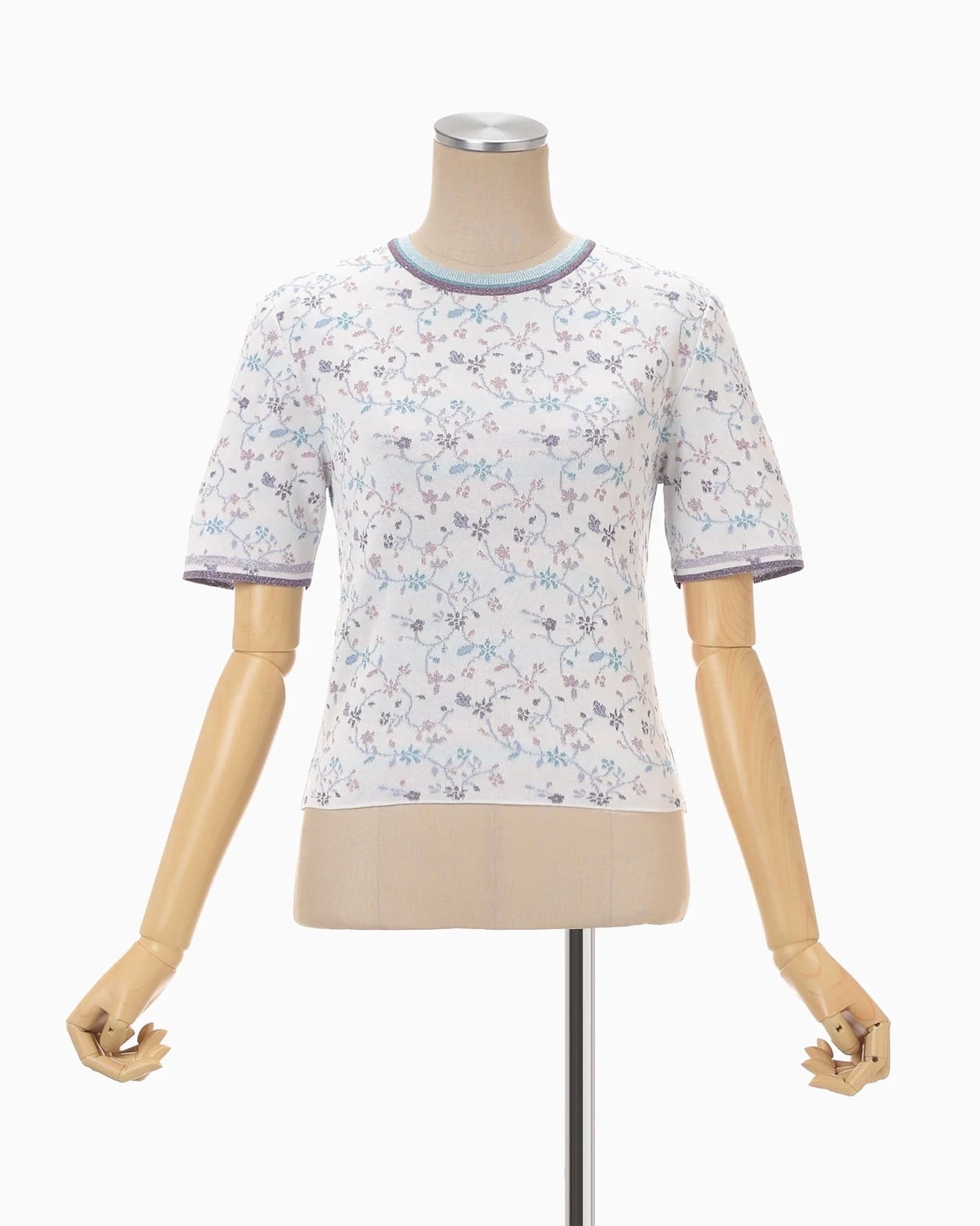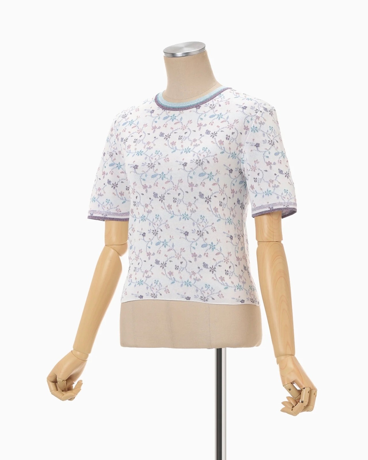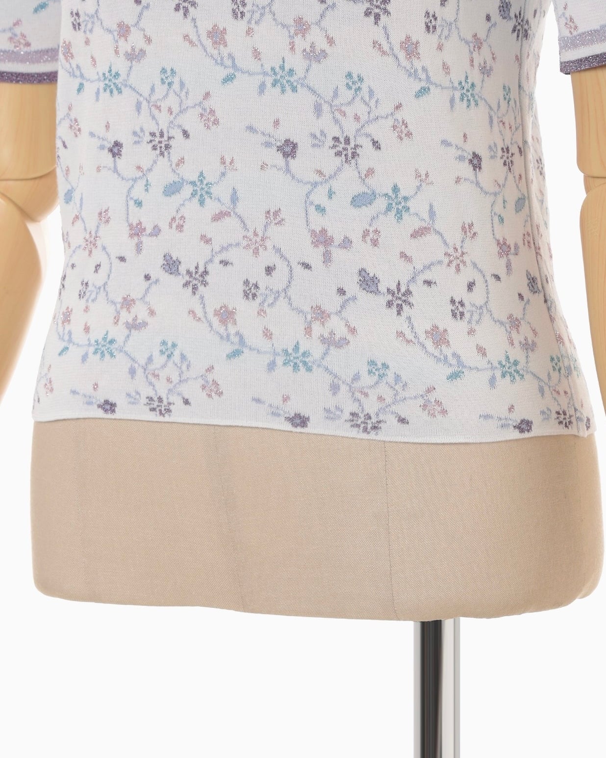【Mame Kurogouchi】Floral Motif Glitter Short Sleeve Knit Top/white