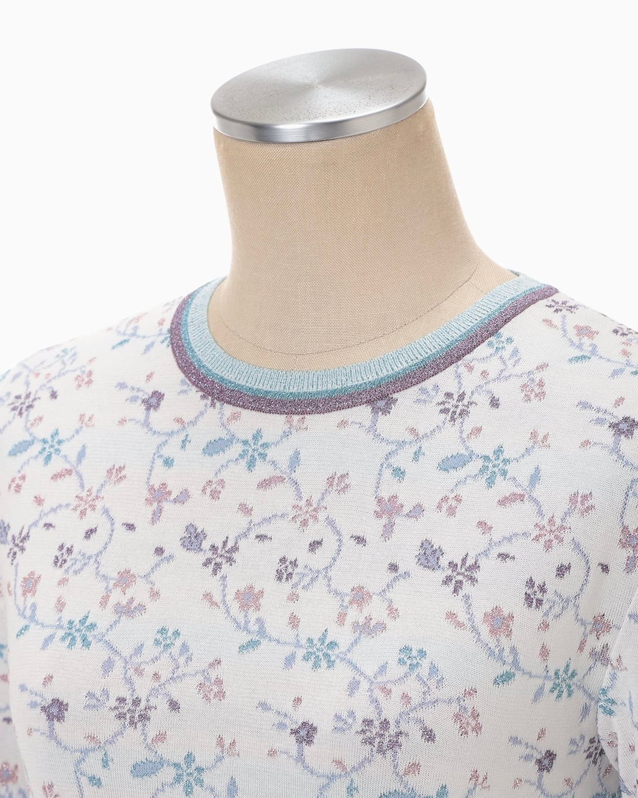 日本の古布や西洋のガラス作品にも見られる蔦柄を表現したニットトップ。