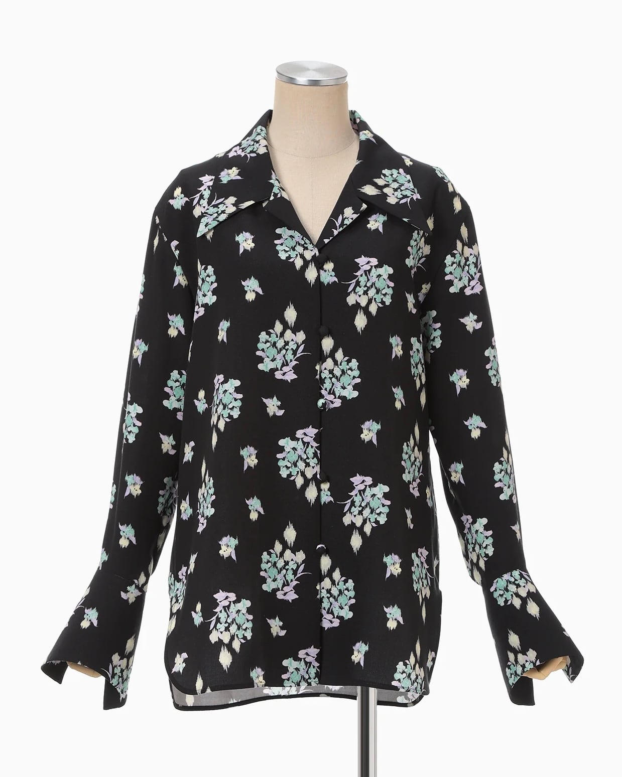 【Mame Kurogouchi】Floral Motif Printed Shirt/black