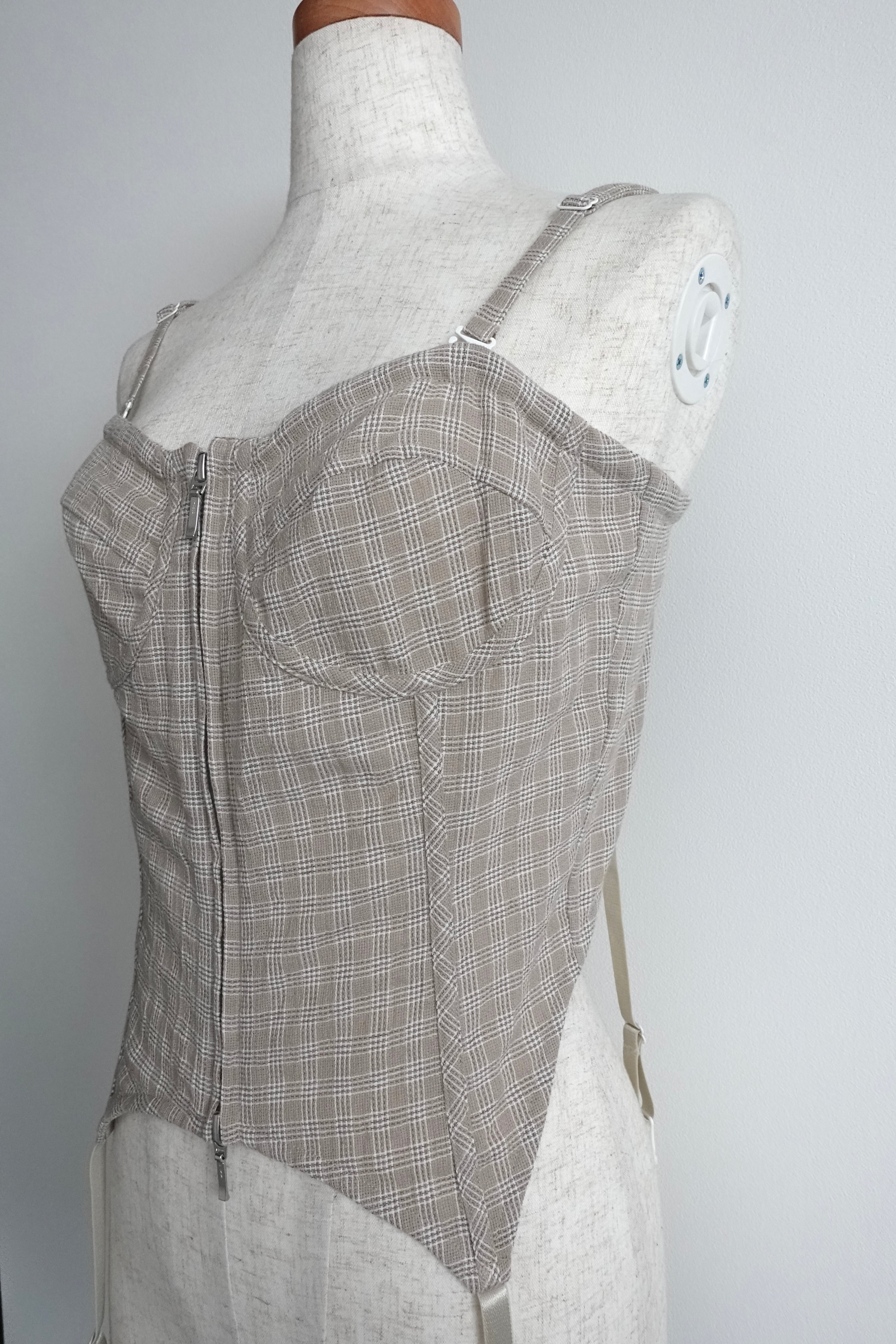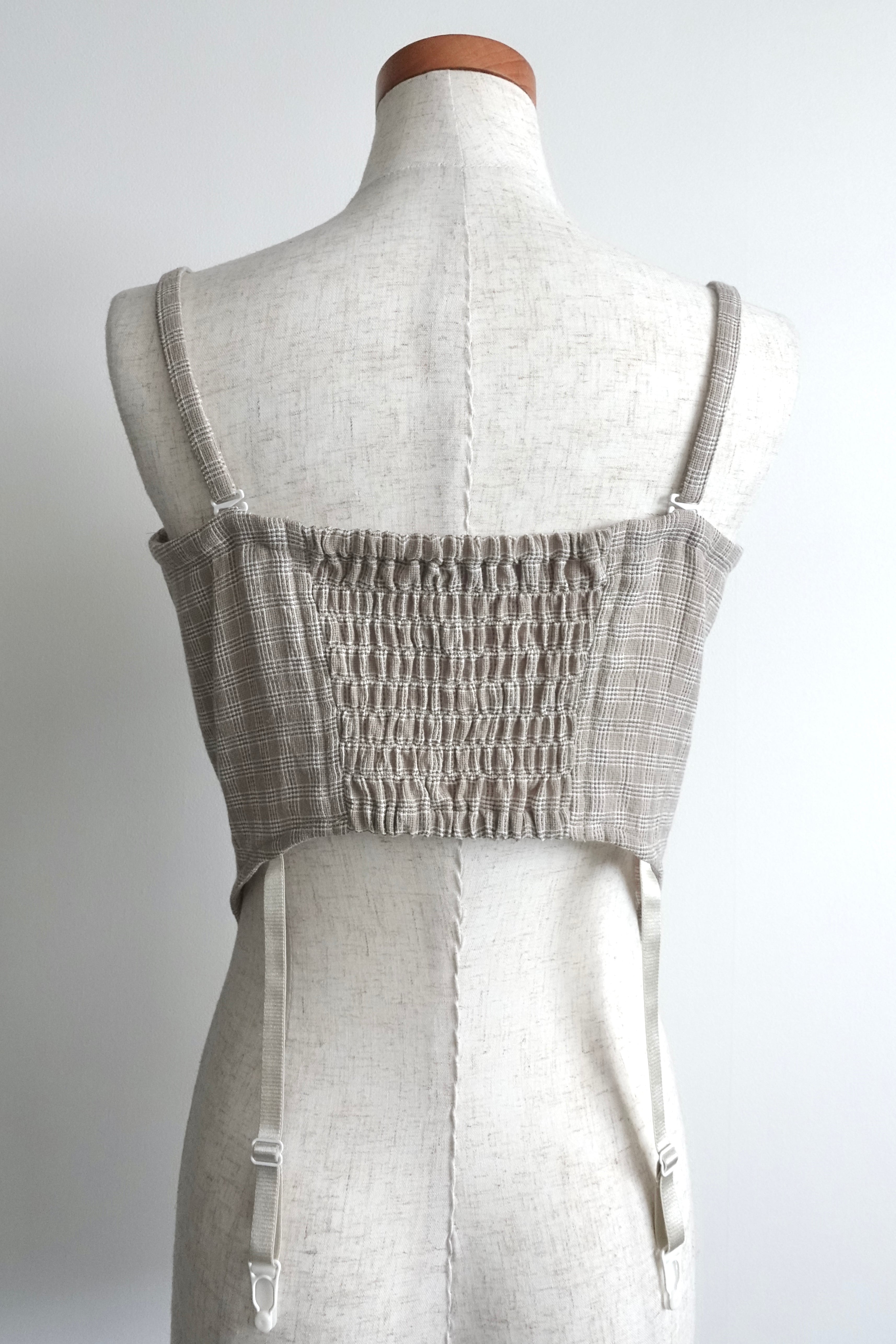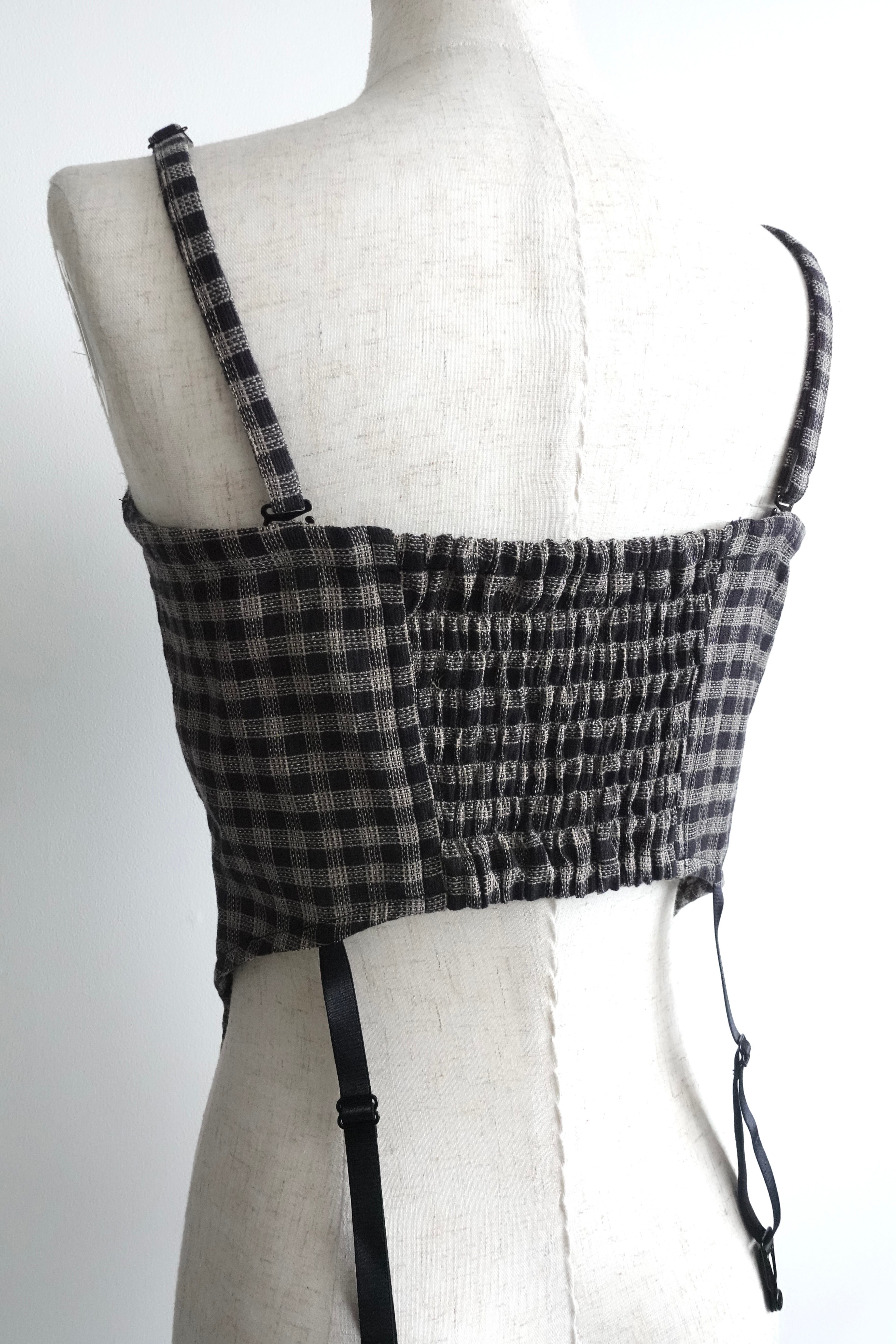 オリジナルの疑紗(ギシャ)組織のコットンチェック生地。この生地の組織の一番の特徴は、紗のように外観から見て、目が開いて透けて見えることが最大のポイントです。