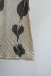 いつもの墨流しとは異なり、お花や葉のような柄を単色の墨流しの手法で表現しました。