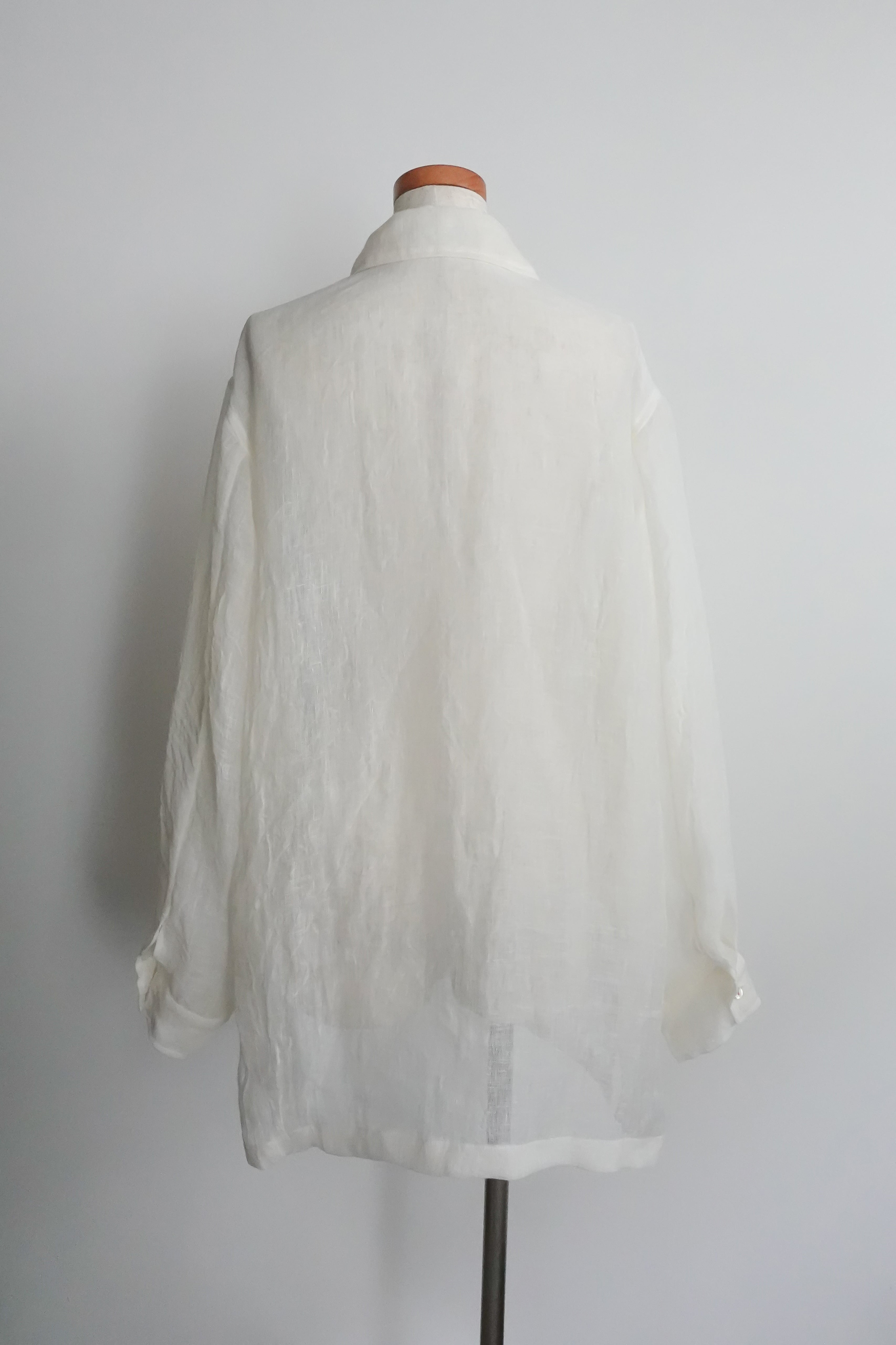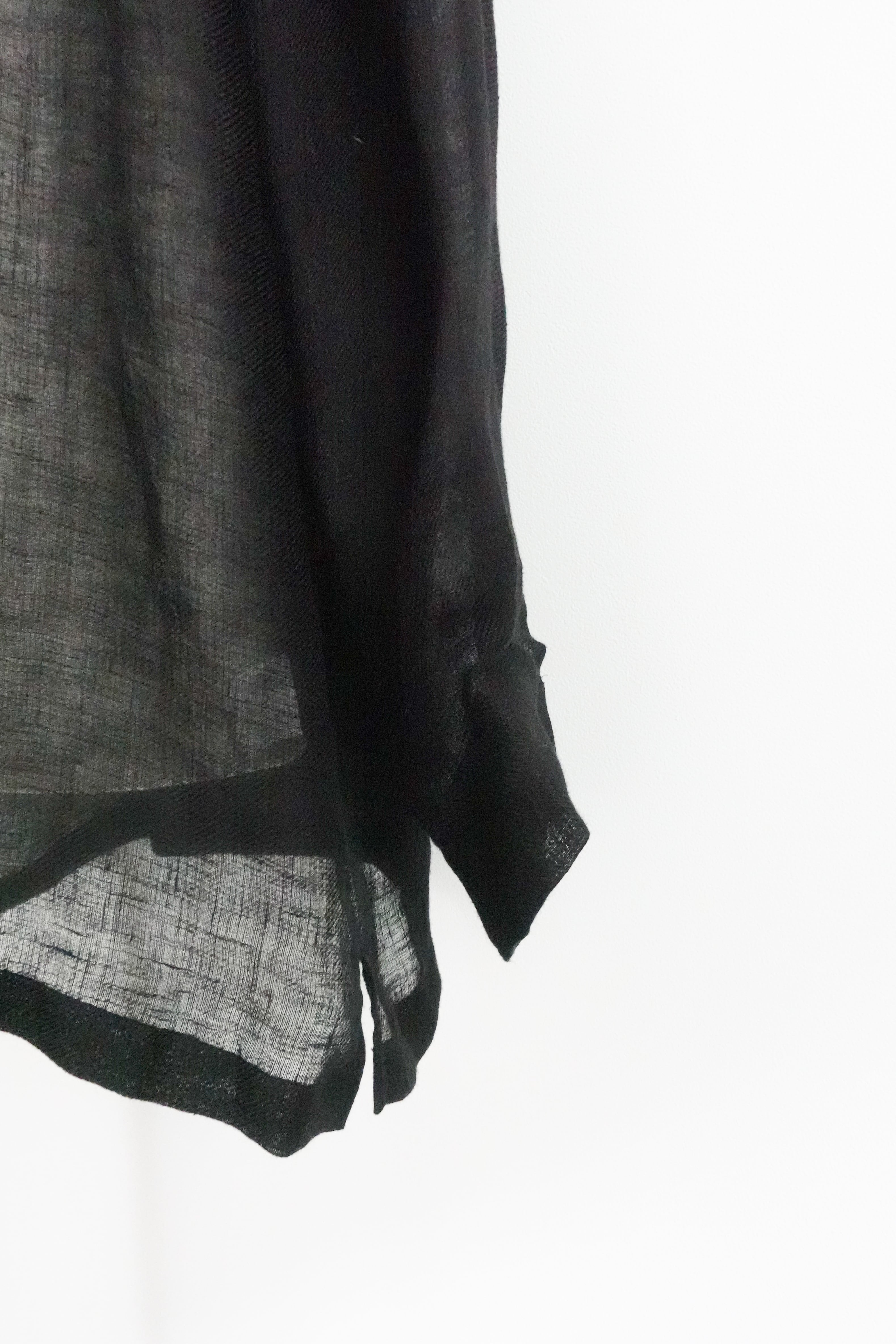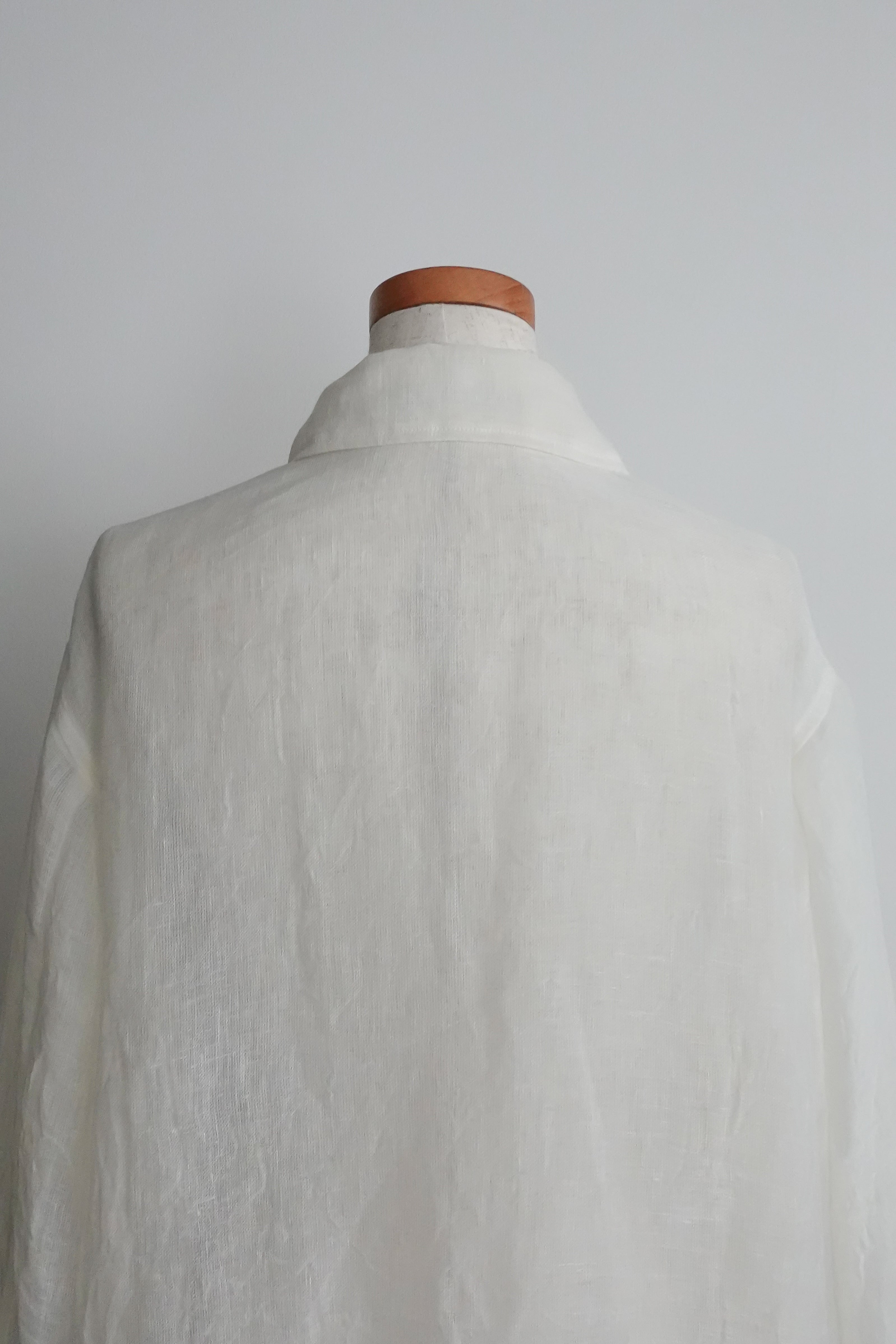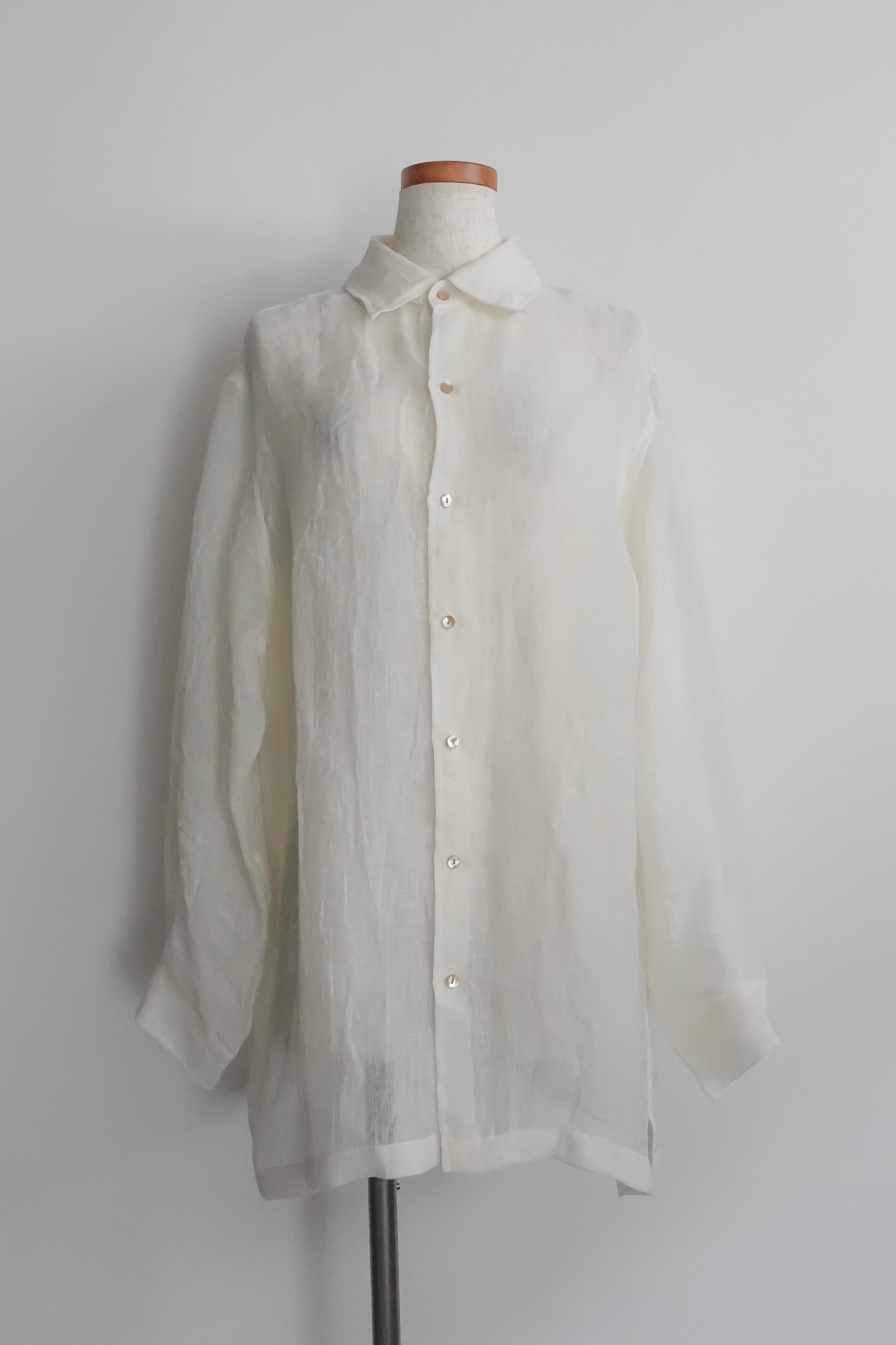程よい透け感と、リネン生地の素材感は日本の猛暑も耐え抜く、涼を感じる肌障りの心地よさがあります。