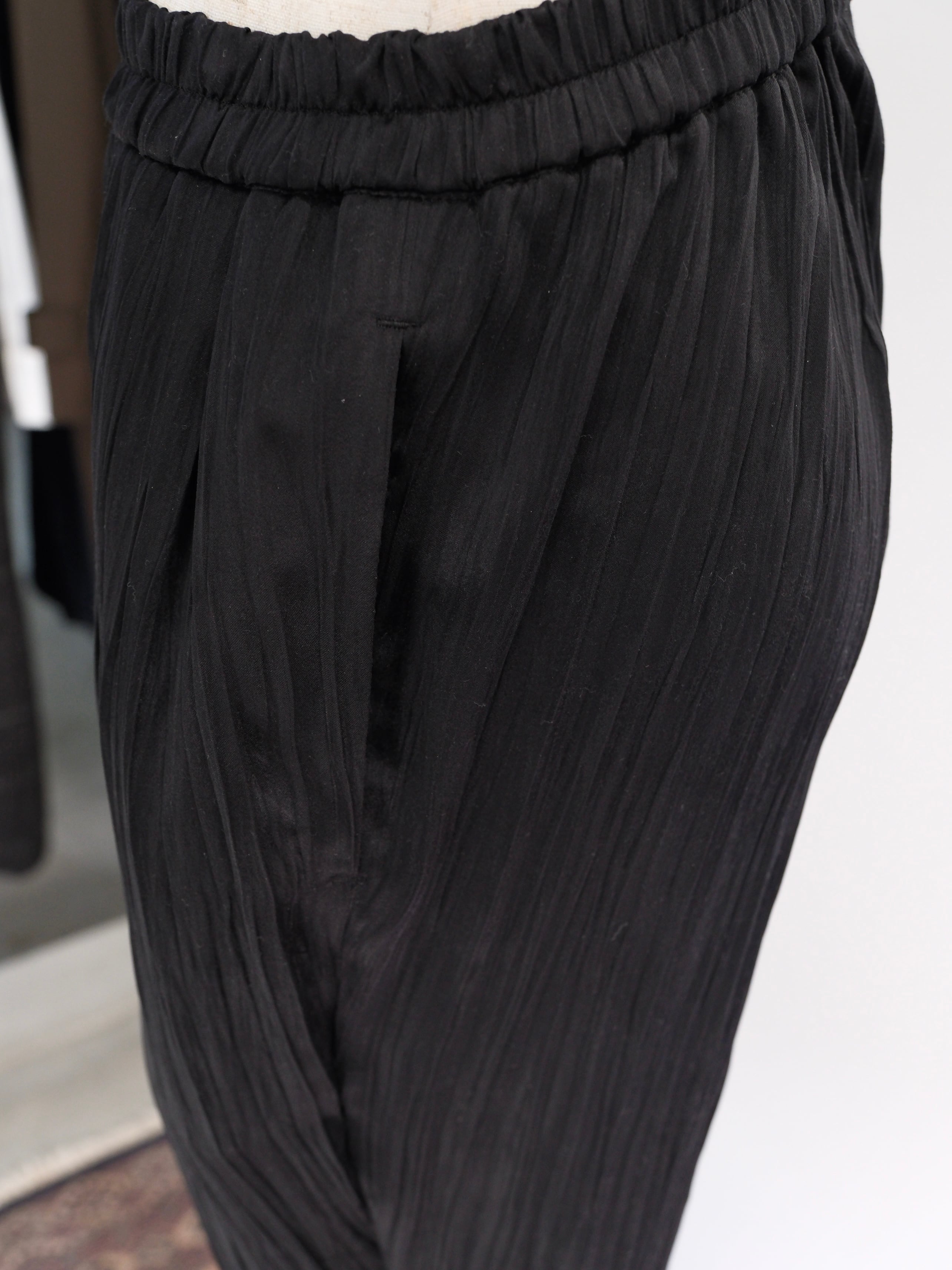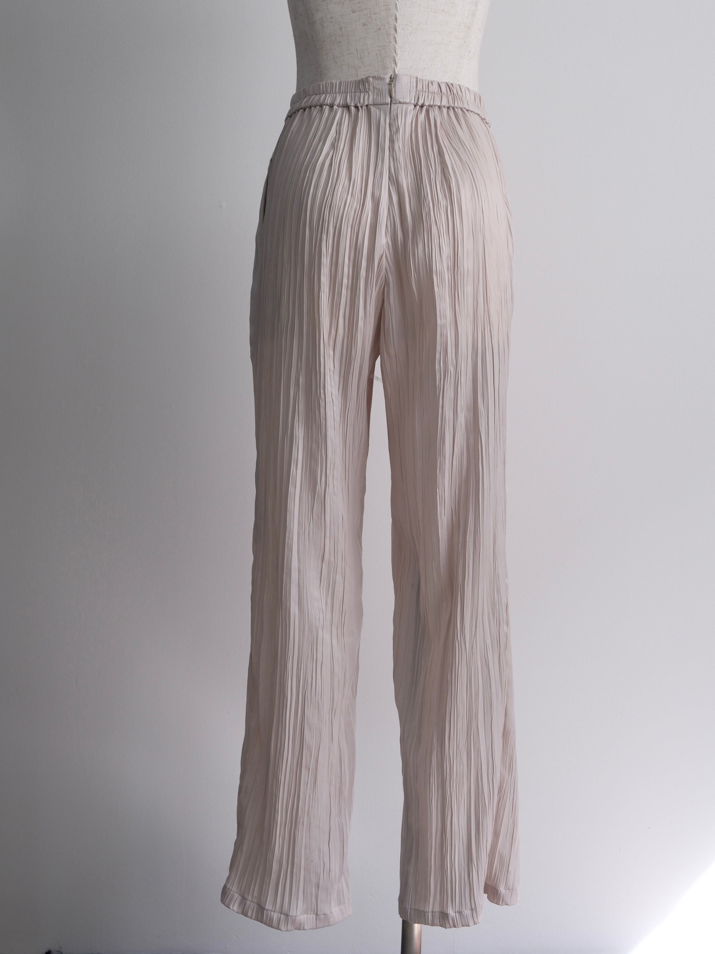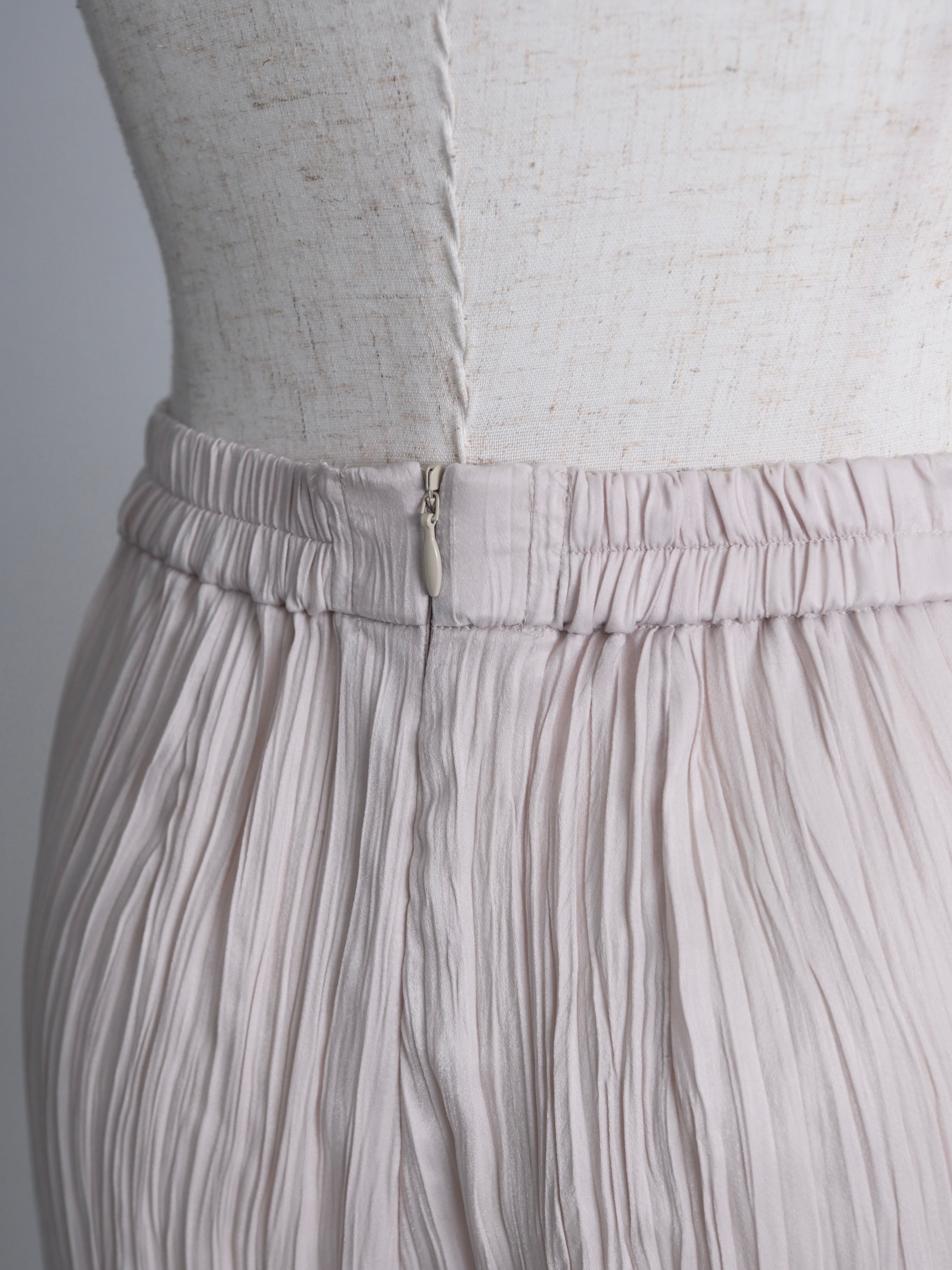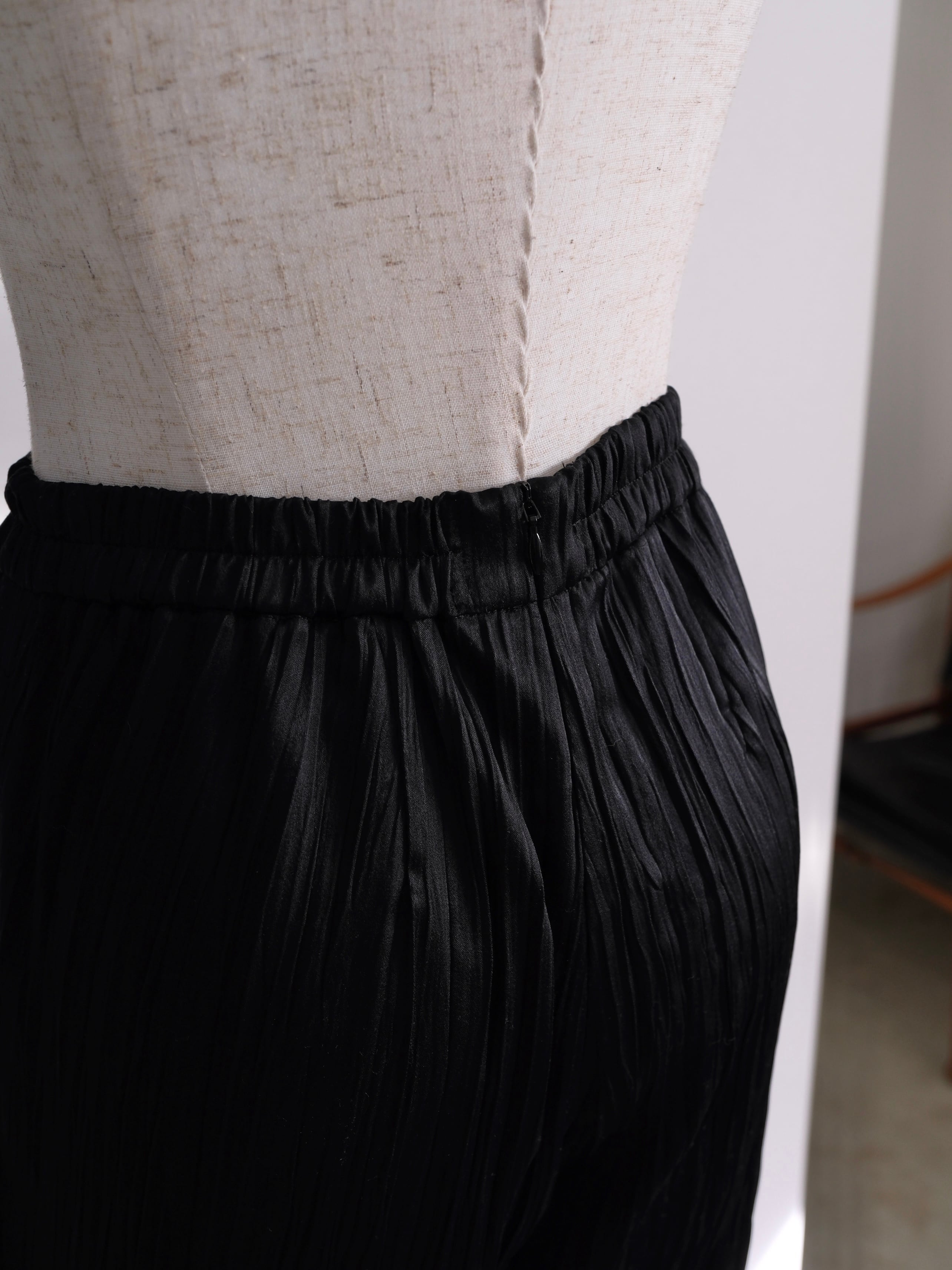・薄地で軽い、ツヤのあるポリエステルスエードにランダムなタテジワ(プリーツ加工)を施しました