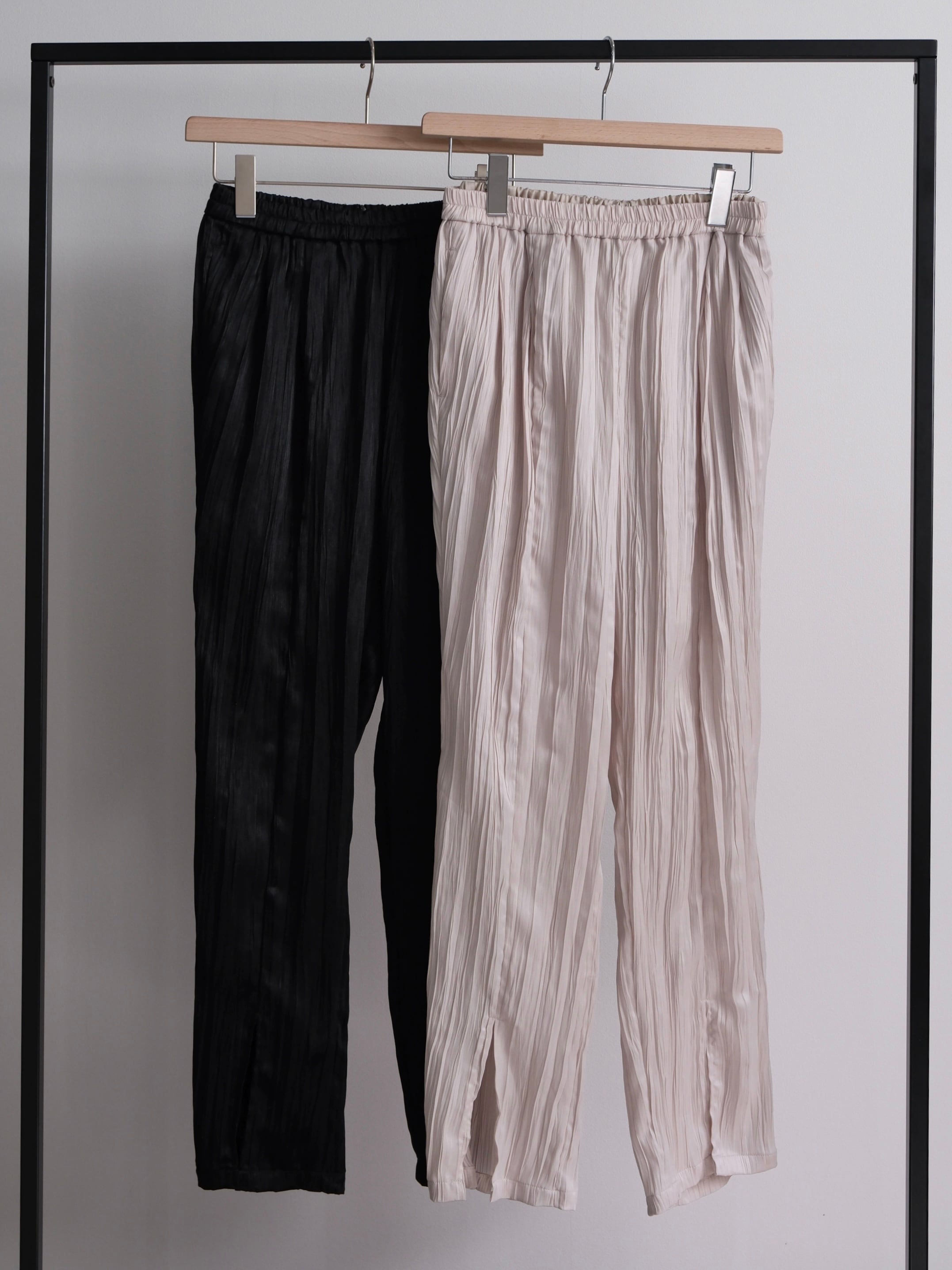 ・ナチュラルなタテジワ加工を施したスリットイージーパンツ