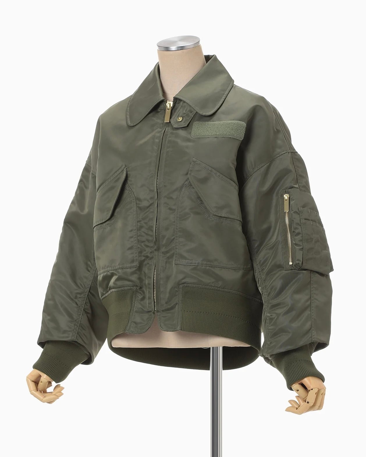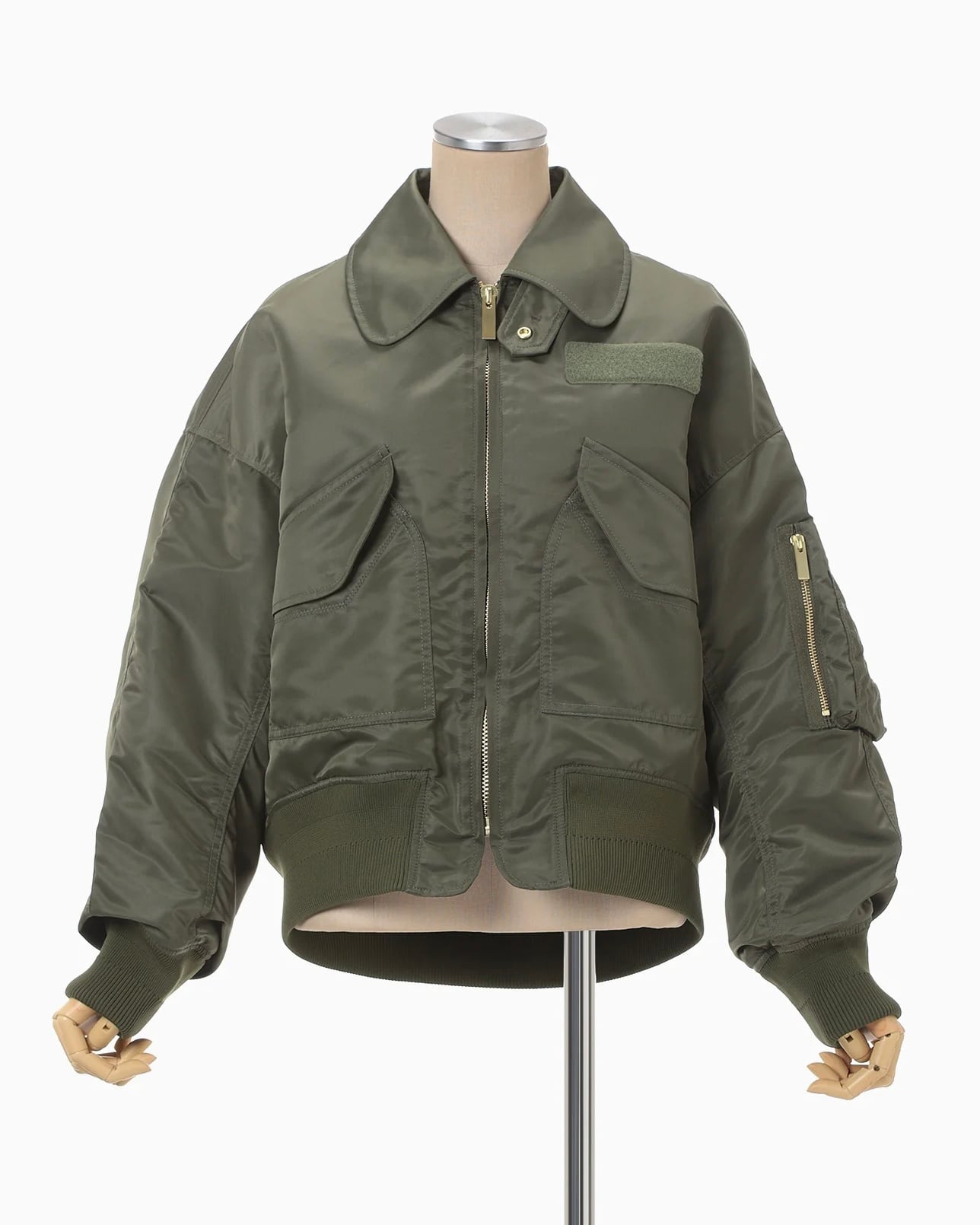 【Mame kurogouchi】Nylon Twill 3D Embroidery Flight Jacket/khaki