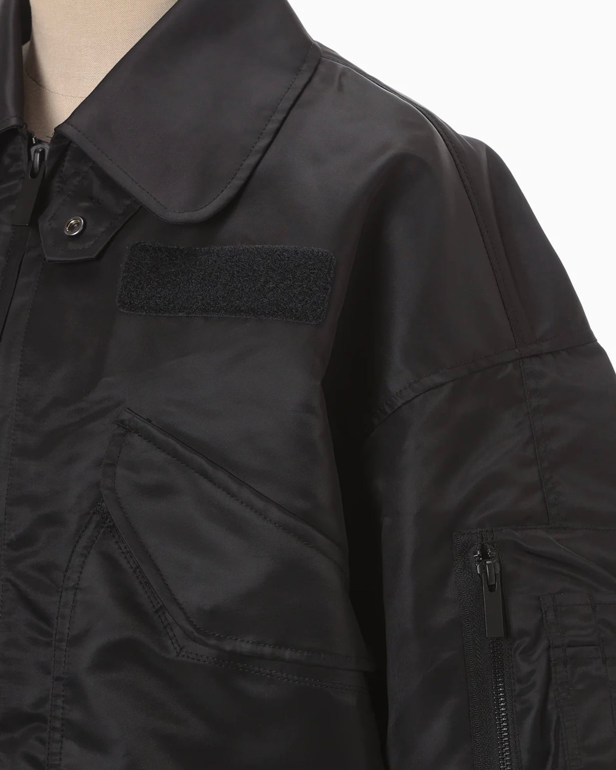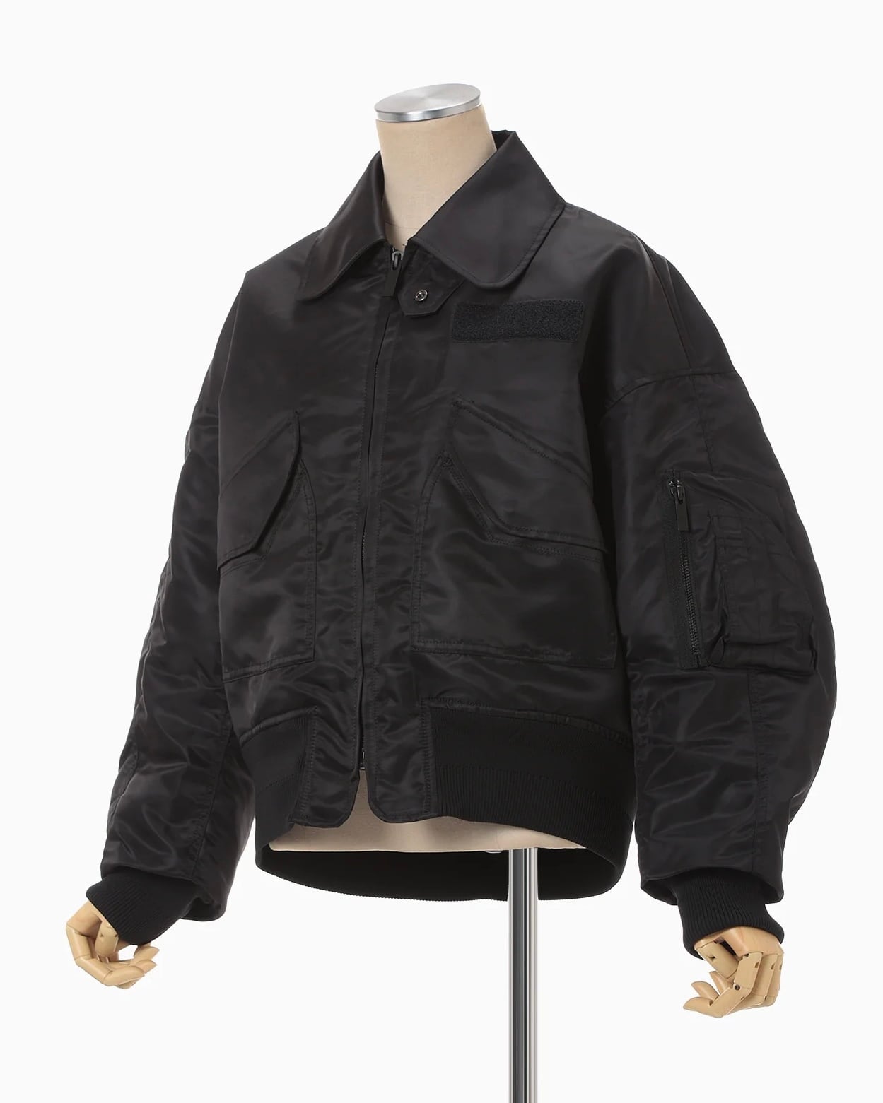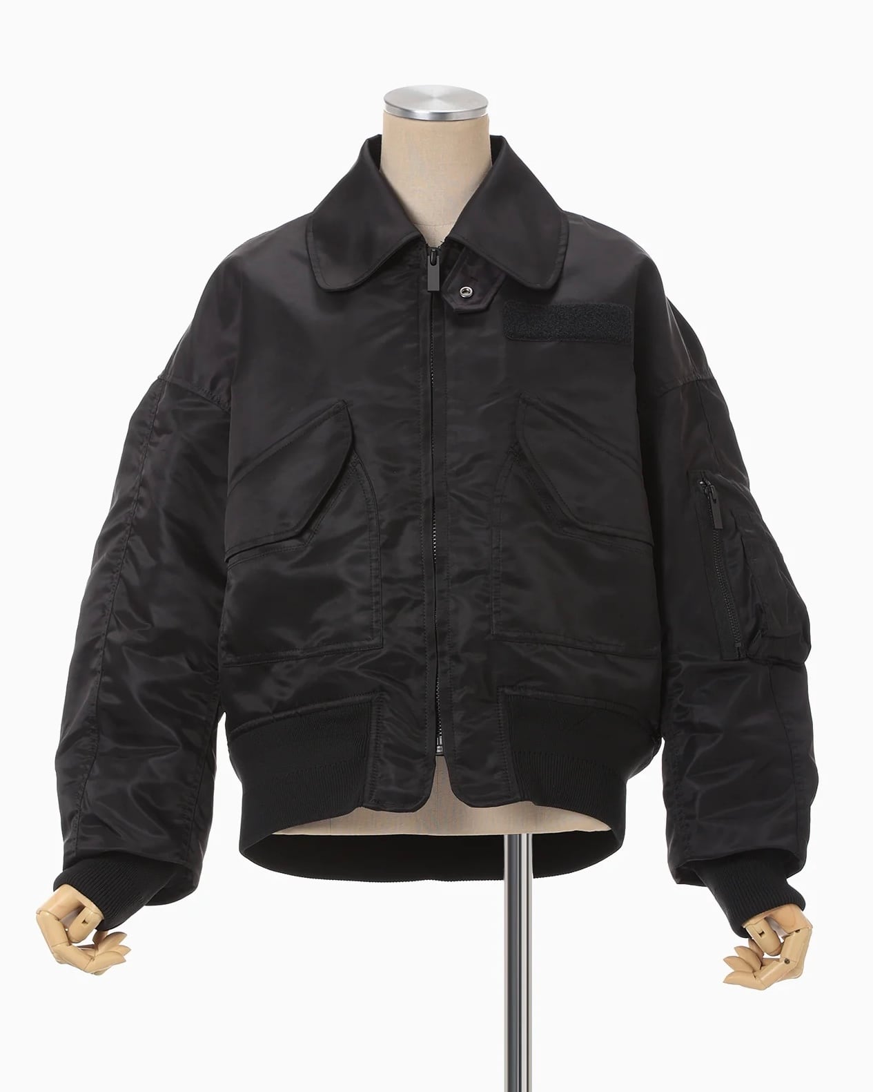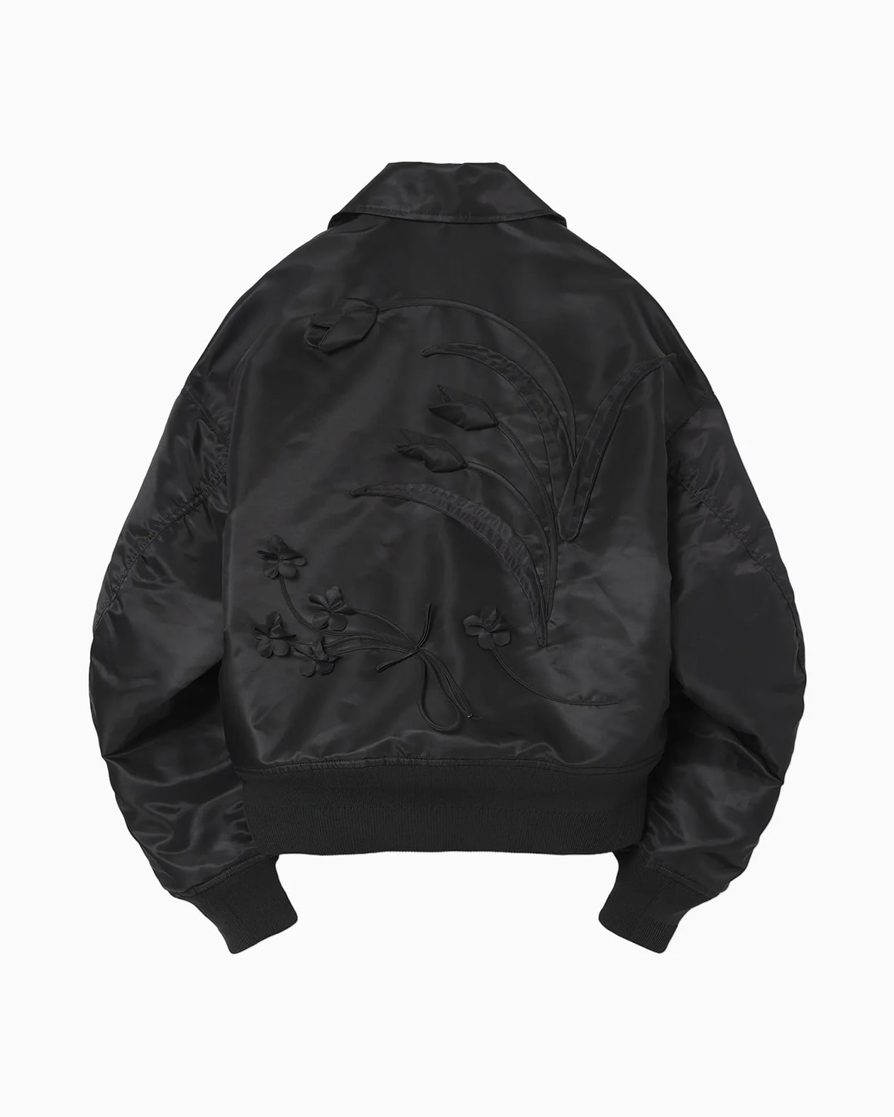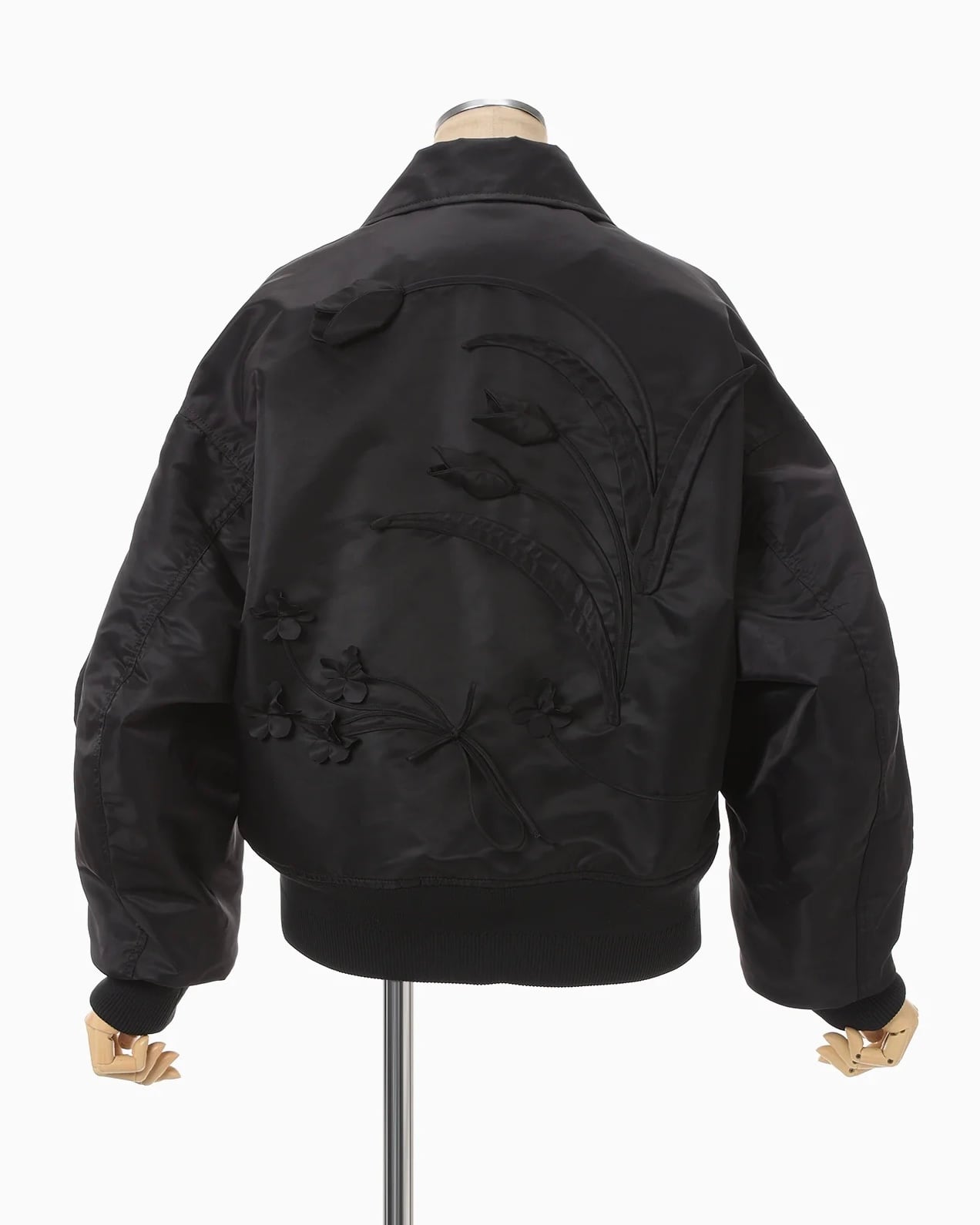 【Mame kurogouchi】Nylon Twill 3D Embroidery Flight Jacket/black