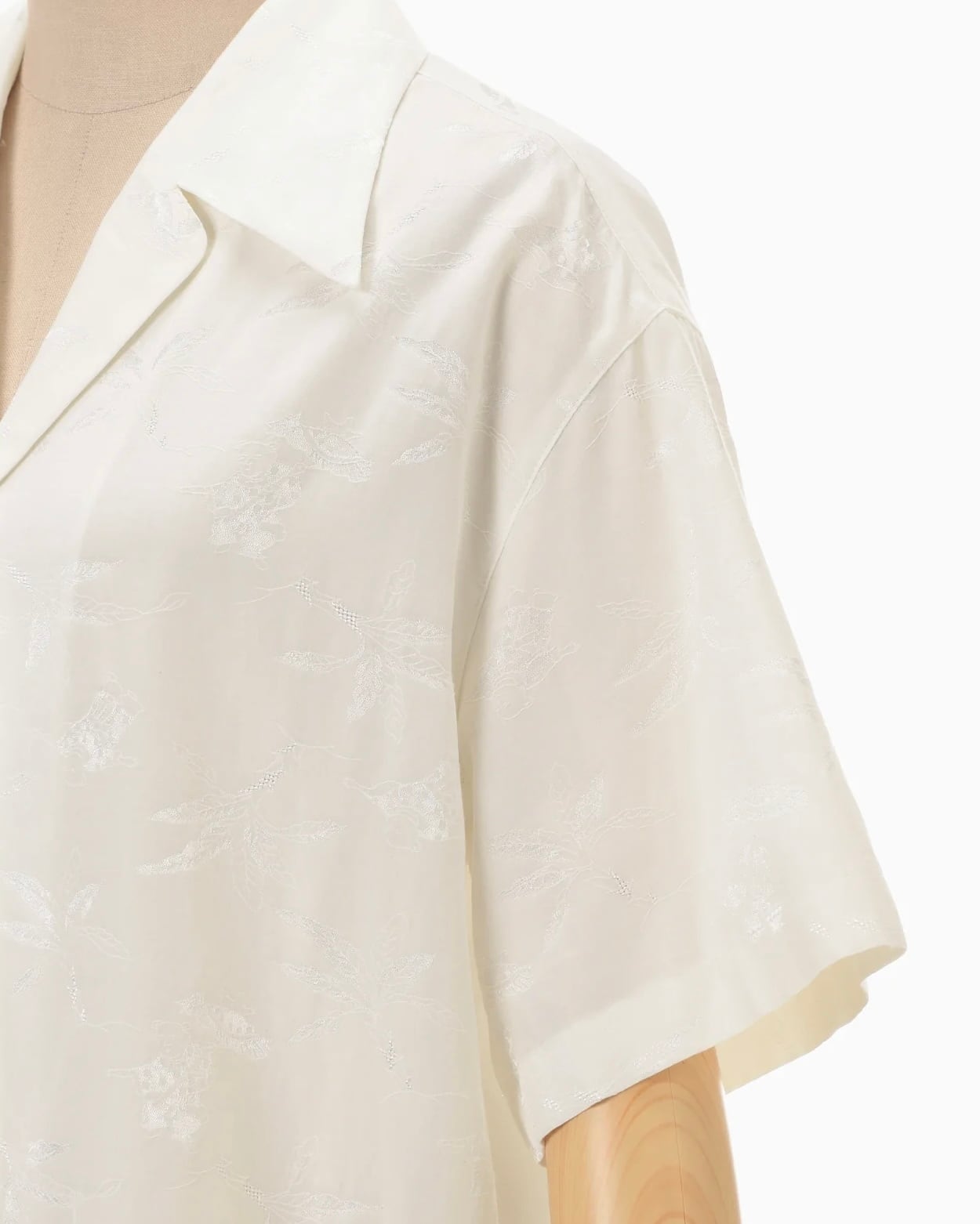 【Mame Kurogouchi】Karako Jacquard Open Collar Shirt /ecru