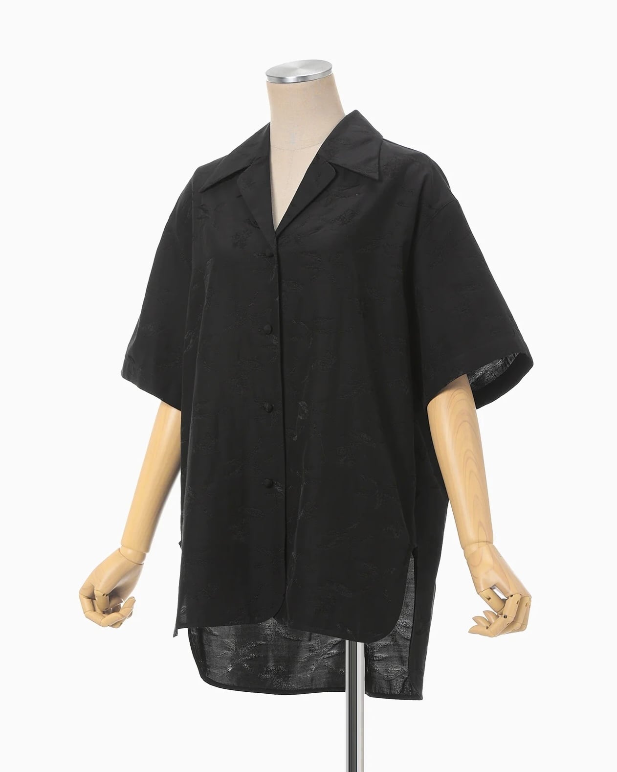 【Mame kurogouchi】Karako Jacquard Open Collar Shirt /black