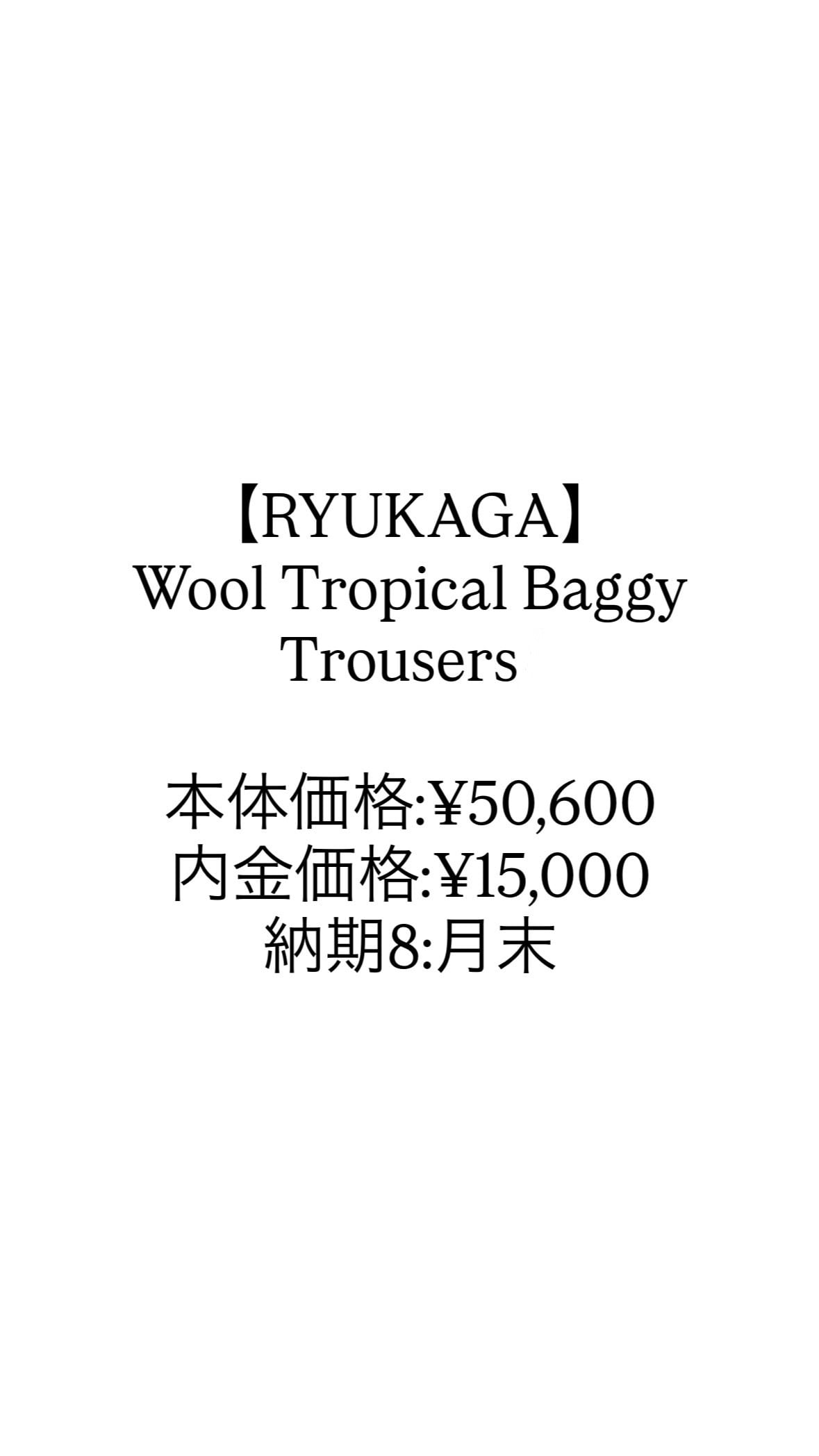 ⚠️受注商品【RYU KAGA】Wool Tropical Baggy Trousers/BLACK
