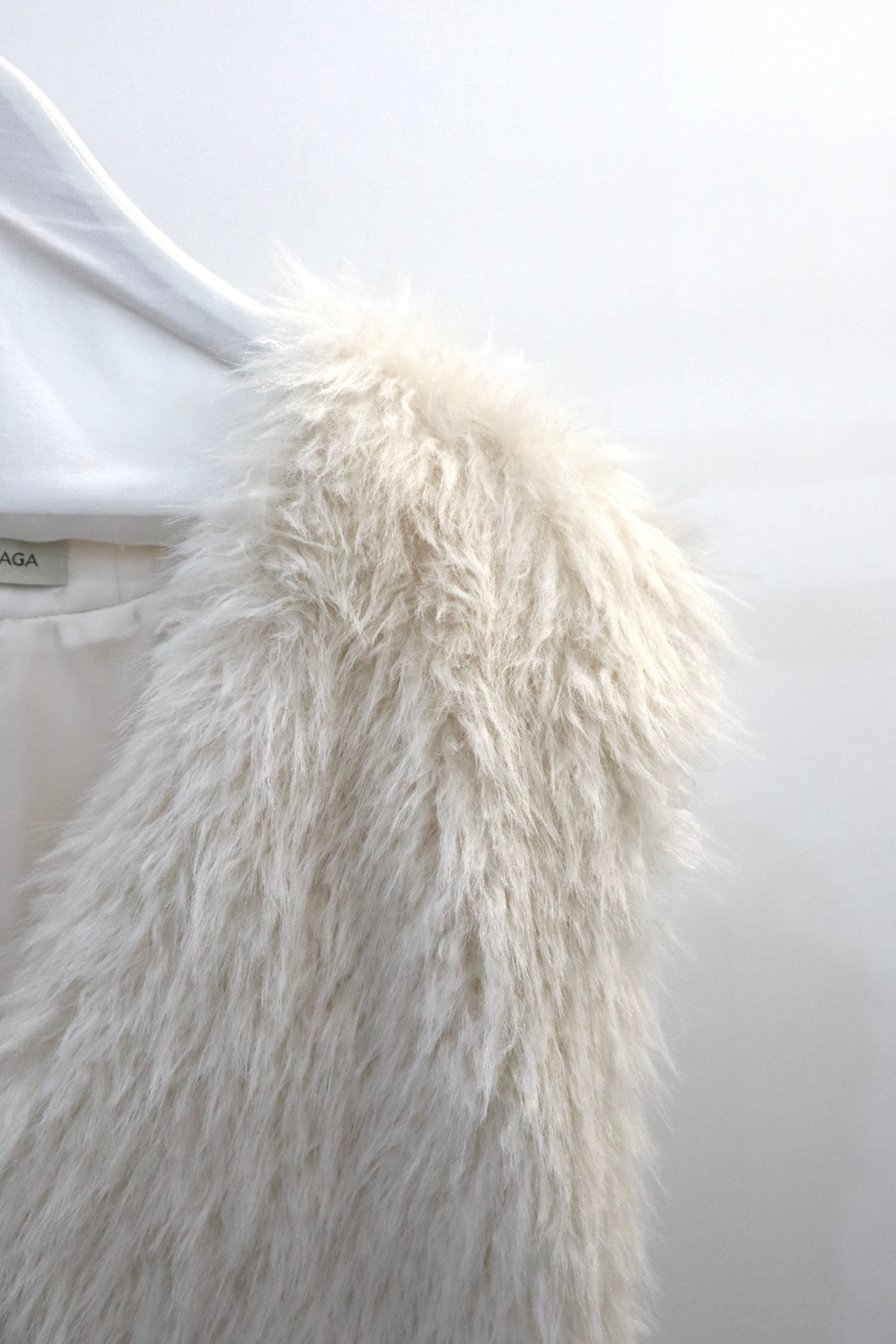 ・カシミヤゴート風のフェイクファー・アシンメトリーベスト