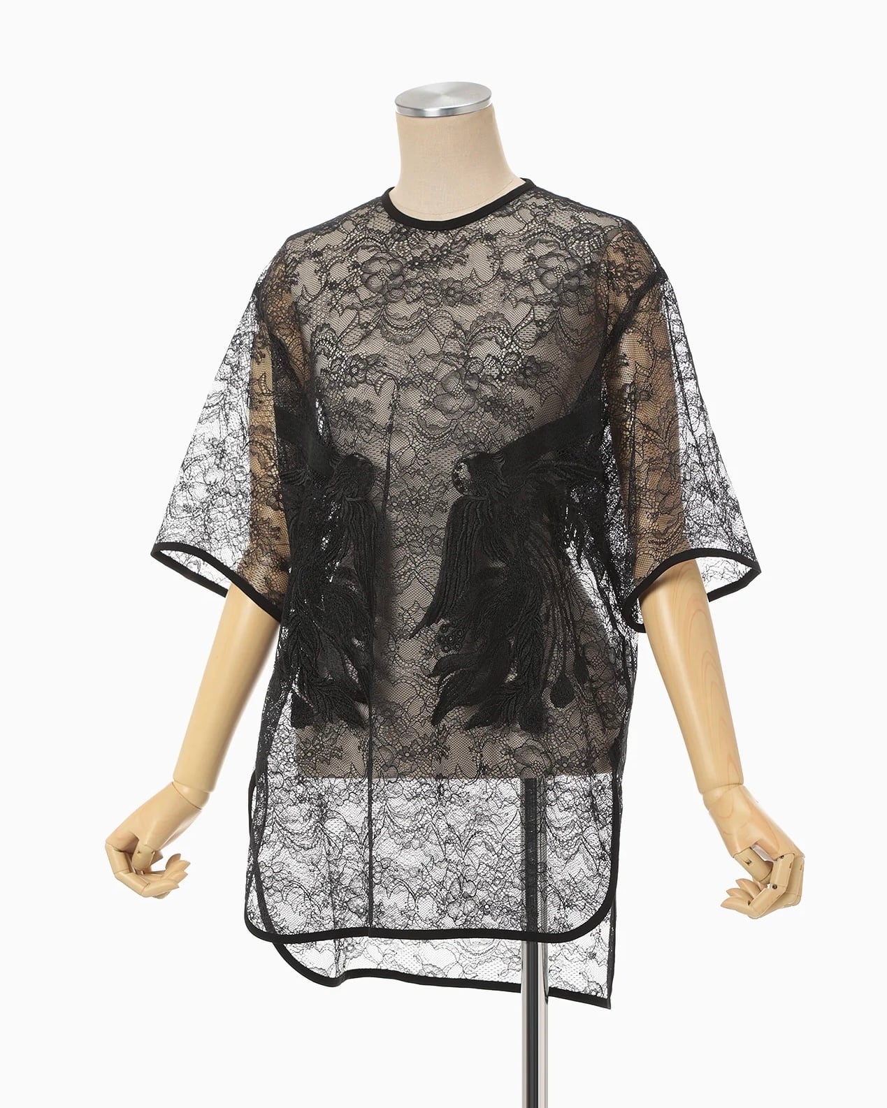 【Mame Kurogouchi】Raschel Lace Embroidered Top/black