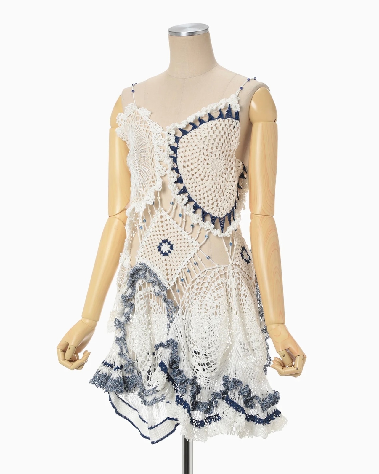 陶器を思わせるモチーフをつなぎ合わせ、春夏らしく軽やかに仕上げたニットキャミソールドレス。